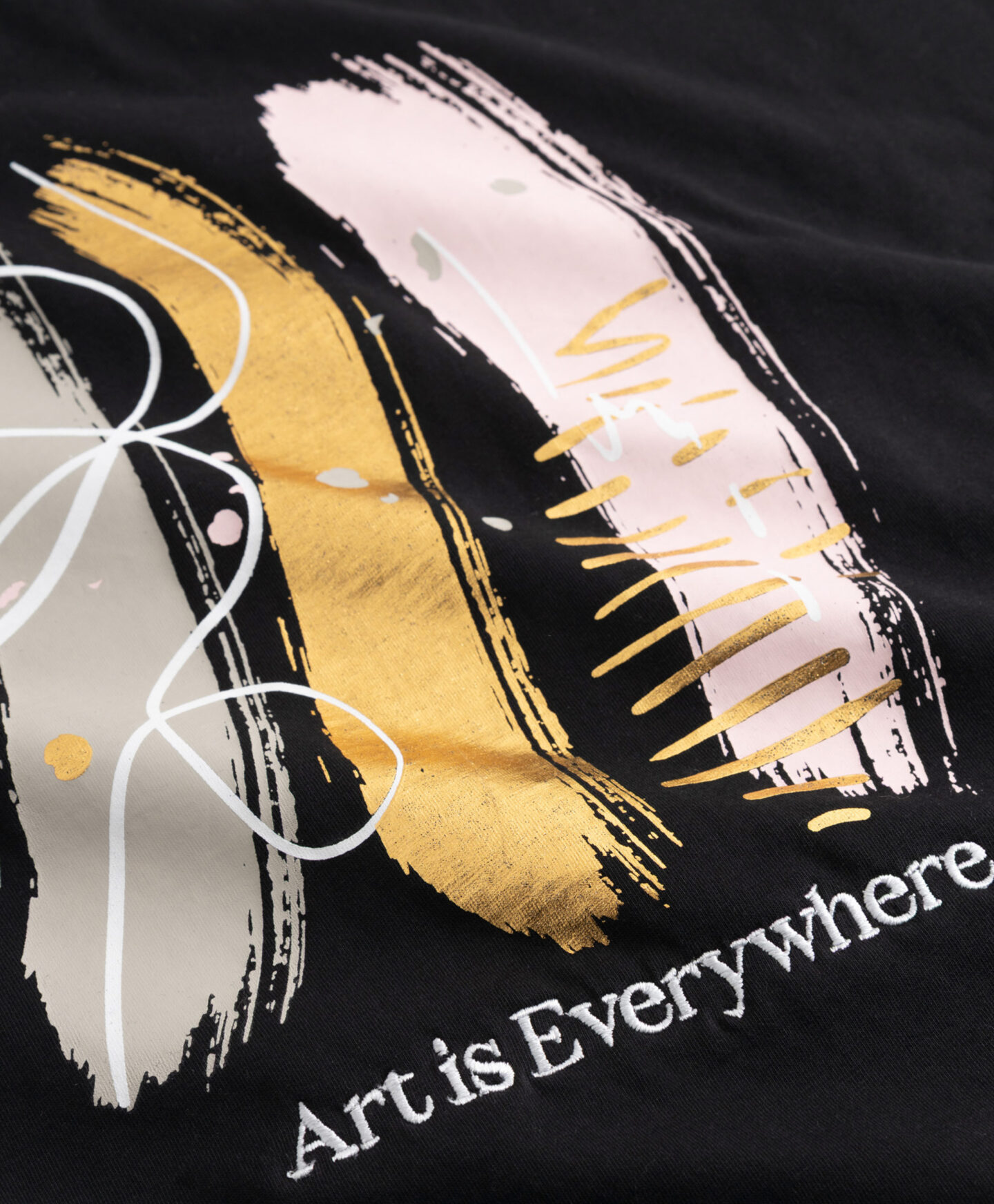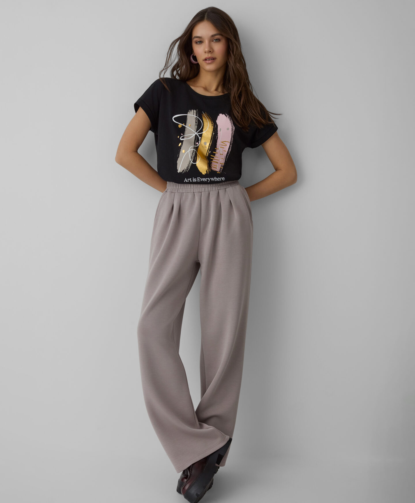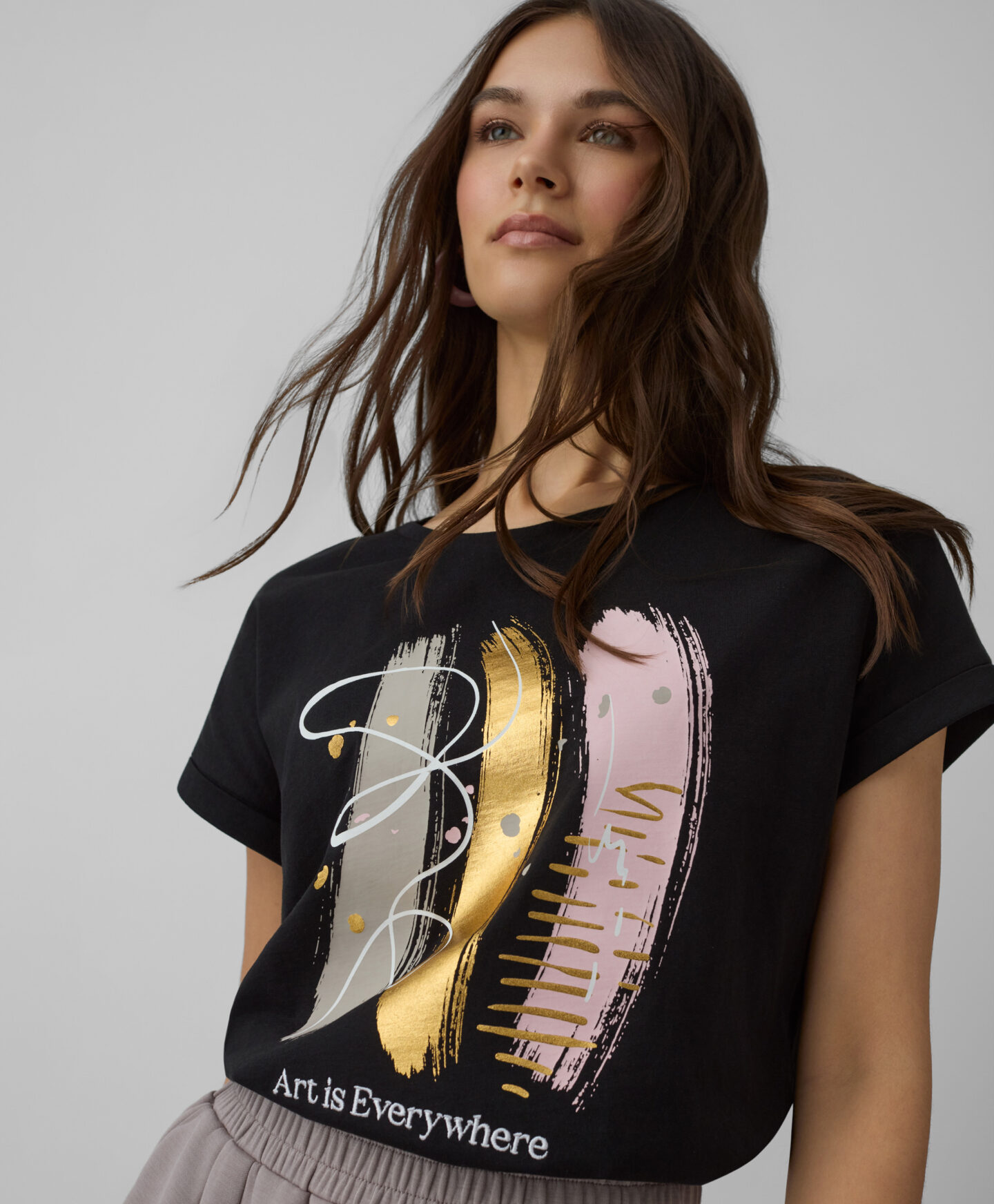 Majica za žene 100% pamuk na kratke rukave savršena je za ljubiteljke udobnih kombinacija. Kroj omogućava slobodu pokreta i daje ležernu notu svakoj odevnoj kombinaciji. Upečatljiva grafika na prednjem delu privlači pažnju.