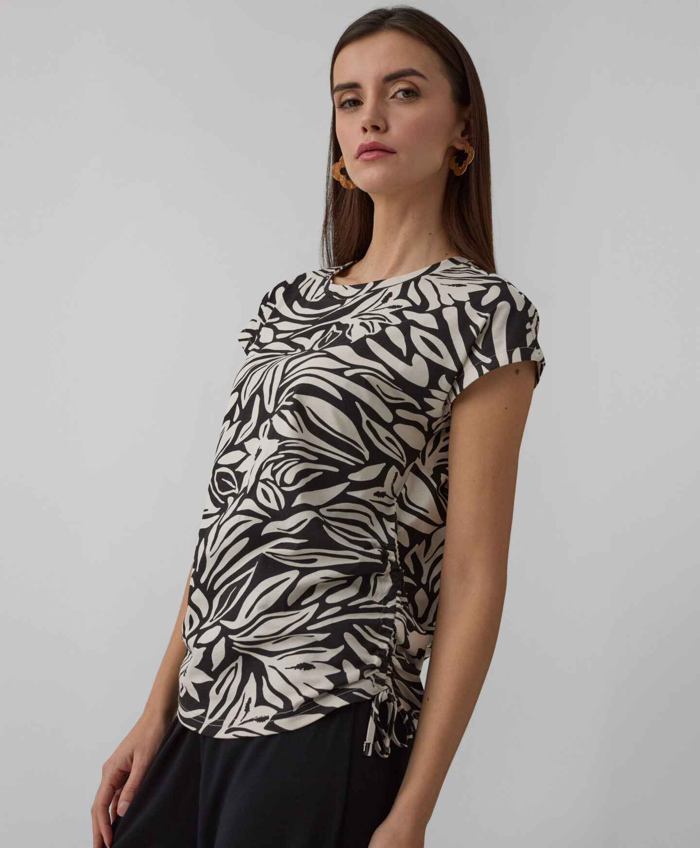 Majica 100% pamuk za žene je neophodan komad u vašem ormaru. Trake su moderan detalj koji dodaje ženstvenost i jedinstveni karakter svakoj odevnoj kombinaciji. Mekana, prozračna tkanina obezbeđuje udobnost tokom celog dana, u svako godišnje doba. Majica se odlično slaže i sa ležernim farmericama i sa elegantnim pantalonama i suknjama.