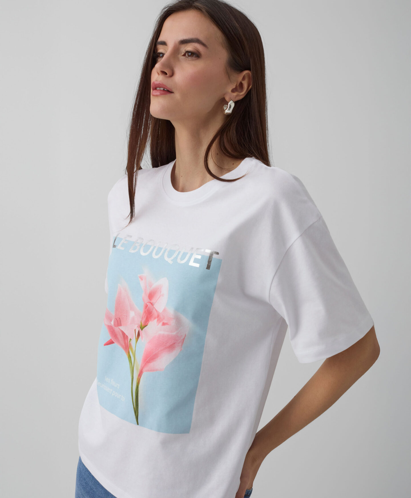 Majica za žene od 100% pamuka sa motivom cveća uneće svežinu u vašu odeću! Mekana je, prijatna na dodir i omogućava vašoj koži da diše. Šara s prednje strane privlači poglede i izdvaja majicu od drugih. U kombinaciji sa klasičnim farmerkama stvara univerzalnu odevnu kombinaciju savršenu za sastanke sa prijateljima, svakodnevnu kupovinu ili šetnje sa psom.