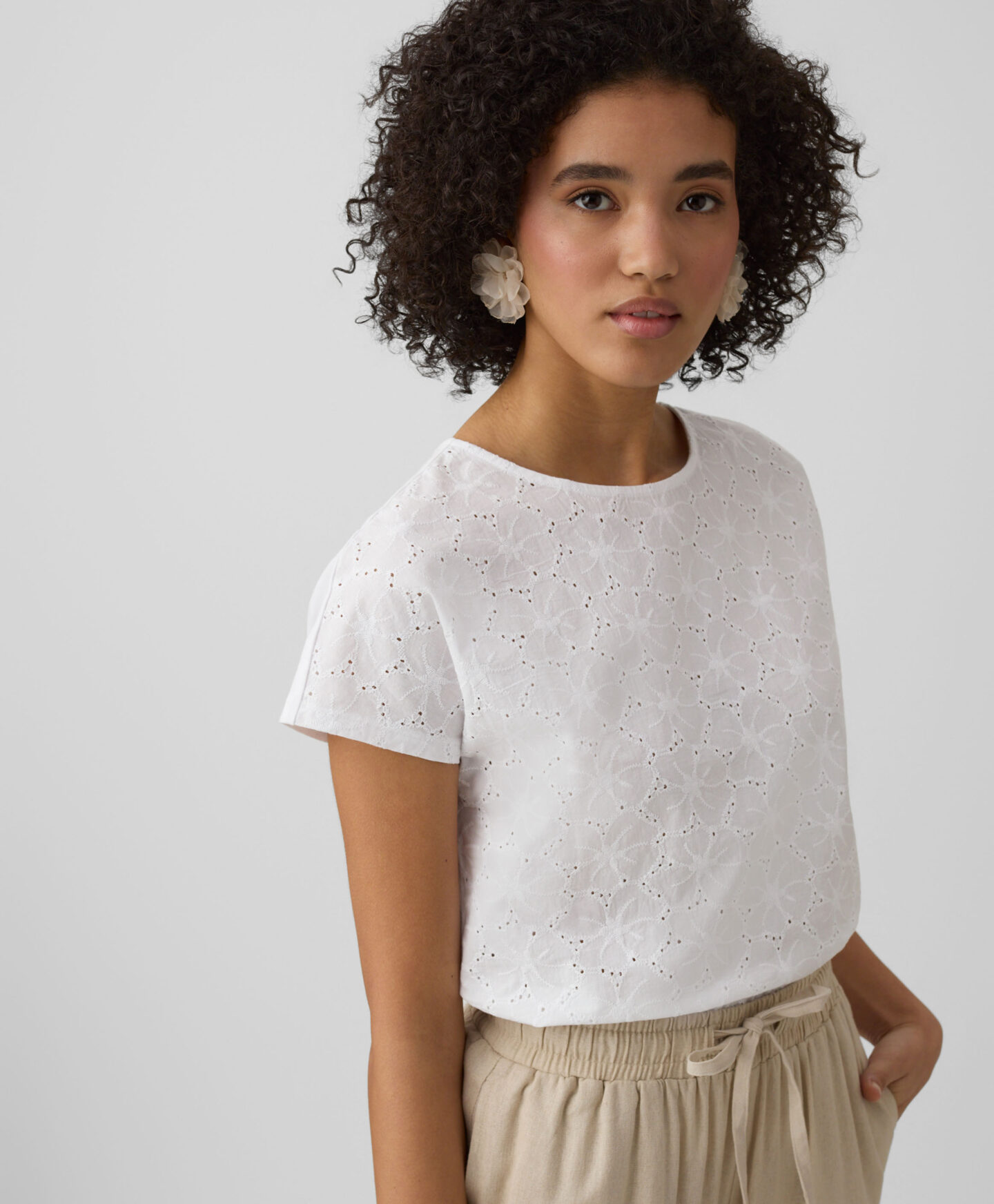 Ova majica za žene od 100% pamuka sa vezom na prednjem delu omogućava koži da diše. Udobna je i lepo pristaje uz figuru. Klasičan kroj i svedene boje čine je odličnom osnovom za mnoge uspešne odevne kombinacije. Savršena je za kombinovanje uz omiljene farmerke, šorts ili elegantne cigaret pantalone.