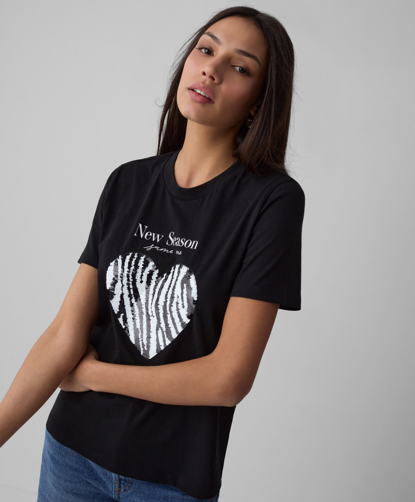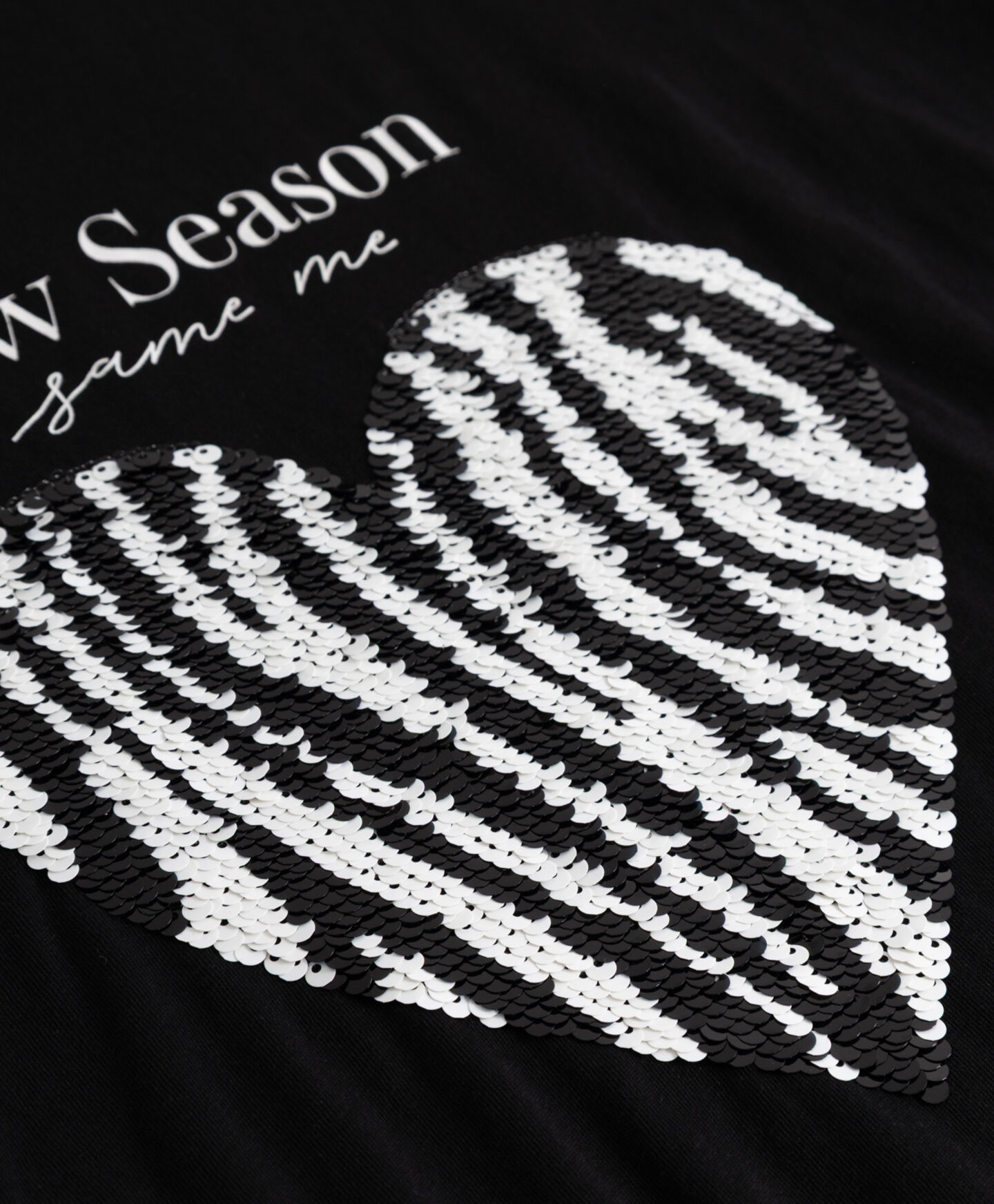 Majica za žene sa šljokicama od 100% pamuka, sa dezenom zebre, privlači pažnju i omogućava vam da se istaknete u masi. Dobro se uklapa u razne odevne kombinacije. Možete je nositi sa farmerkama i kožnom jaknom ili je kombinovati sa elegantnom suknjom i štiklama za posebne prilike. Pamuk nežno obavija kožu, obezbeđujući udobnost tokom celog dana.