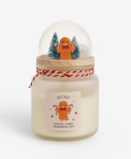 Mirišljava sveća u beloj staklenoj posudi ističe se svojom svetlom paletom boja i prefinjenim detaljima. Suptilni detalji naglašavaju njen praznični karakter, a kada se upali, širi svetlost i miris, stvarajući harmoničnu atmosferu u domu.