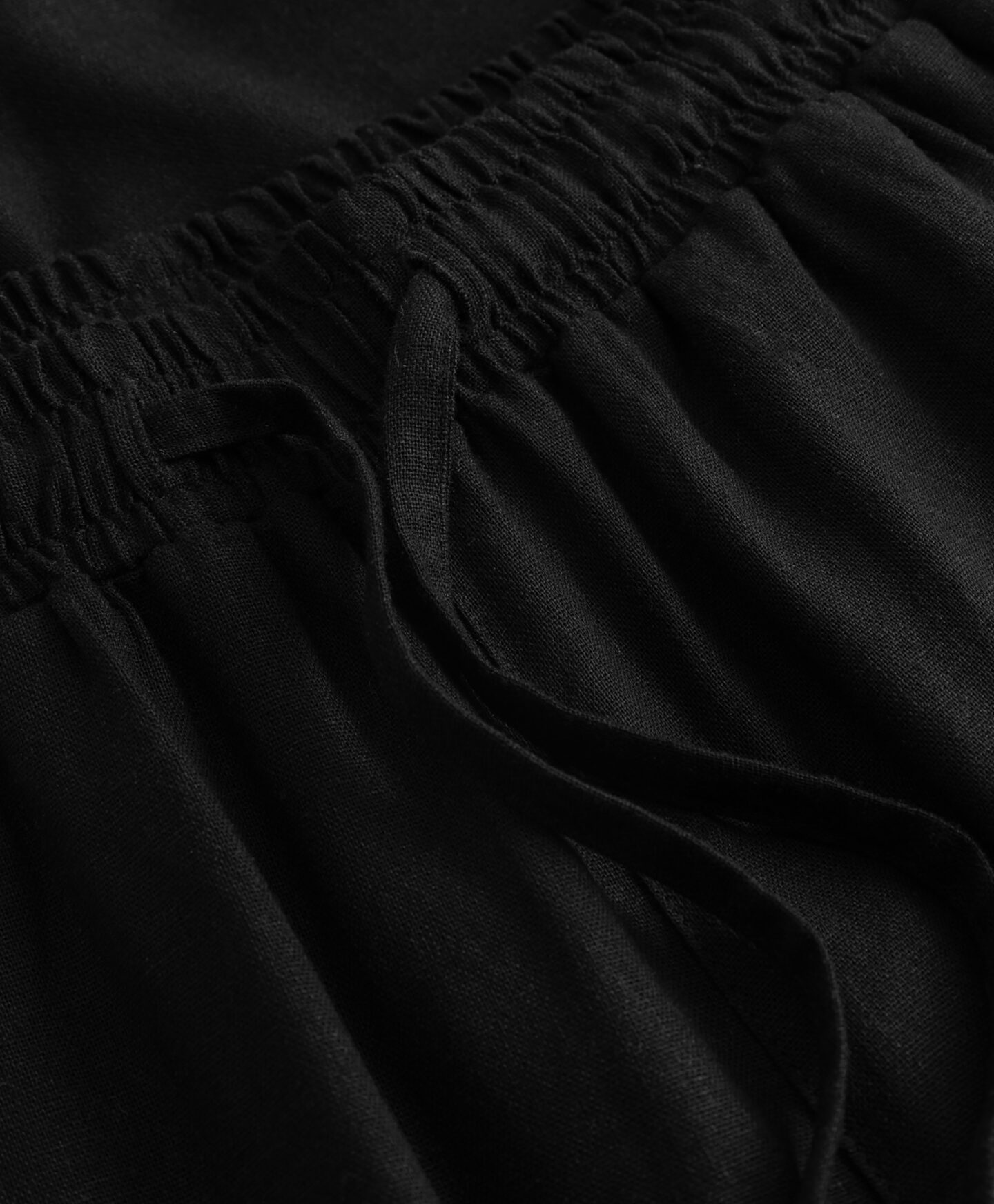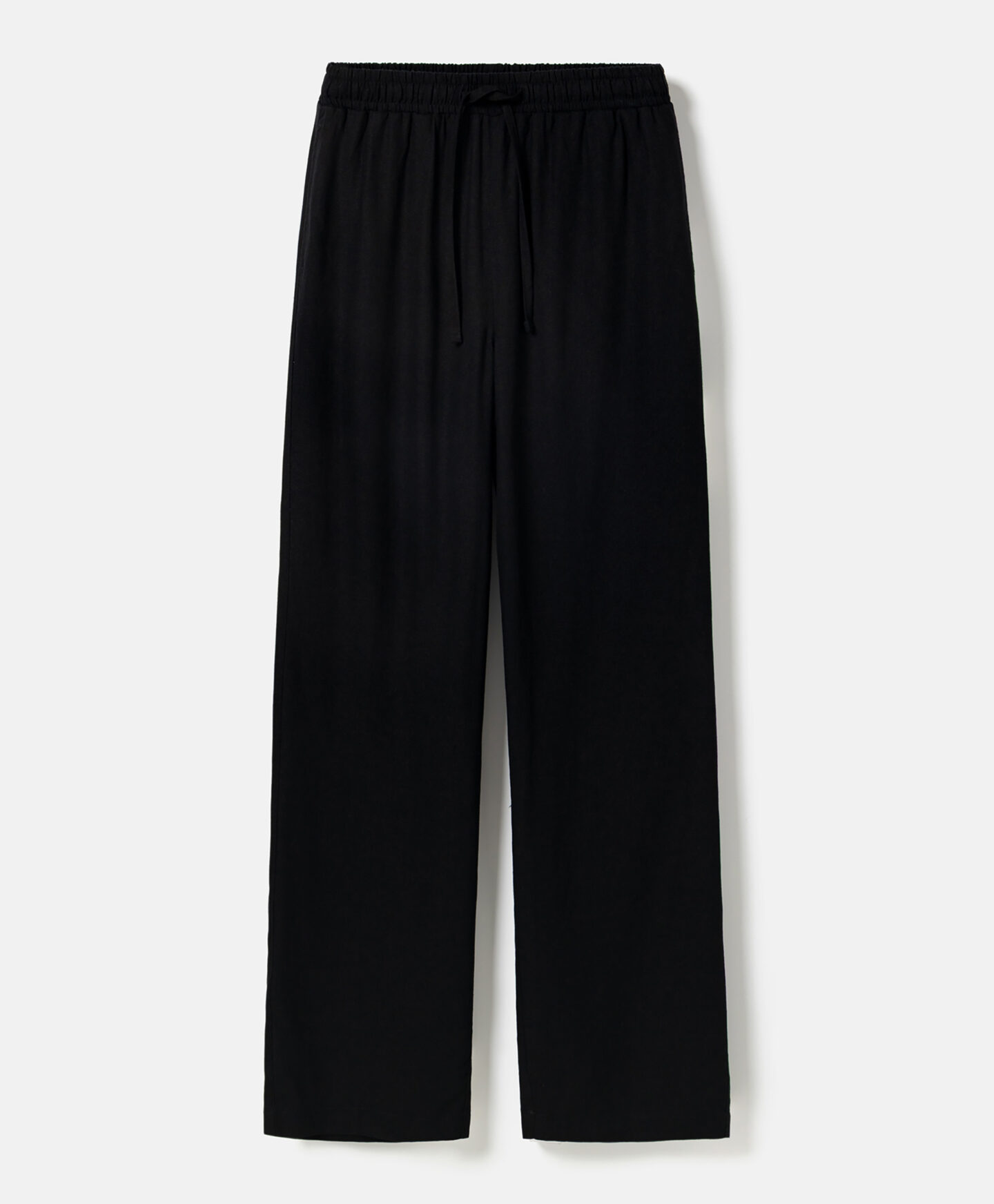 Ove pantalone za žene od viskoze šireg kroja pravi su sinonim za udobnost. Savršene su za tople dane. Lagane su, prozračne i prijatne na dodir. Bezvremena crna boja omogućava lako kombinovanje sa majicama, bluzama ili topovima iz vaše garderobe.