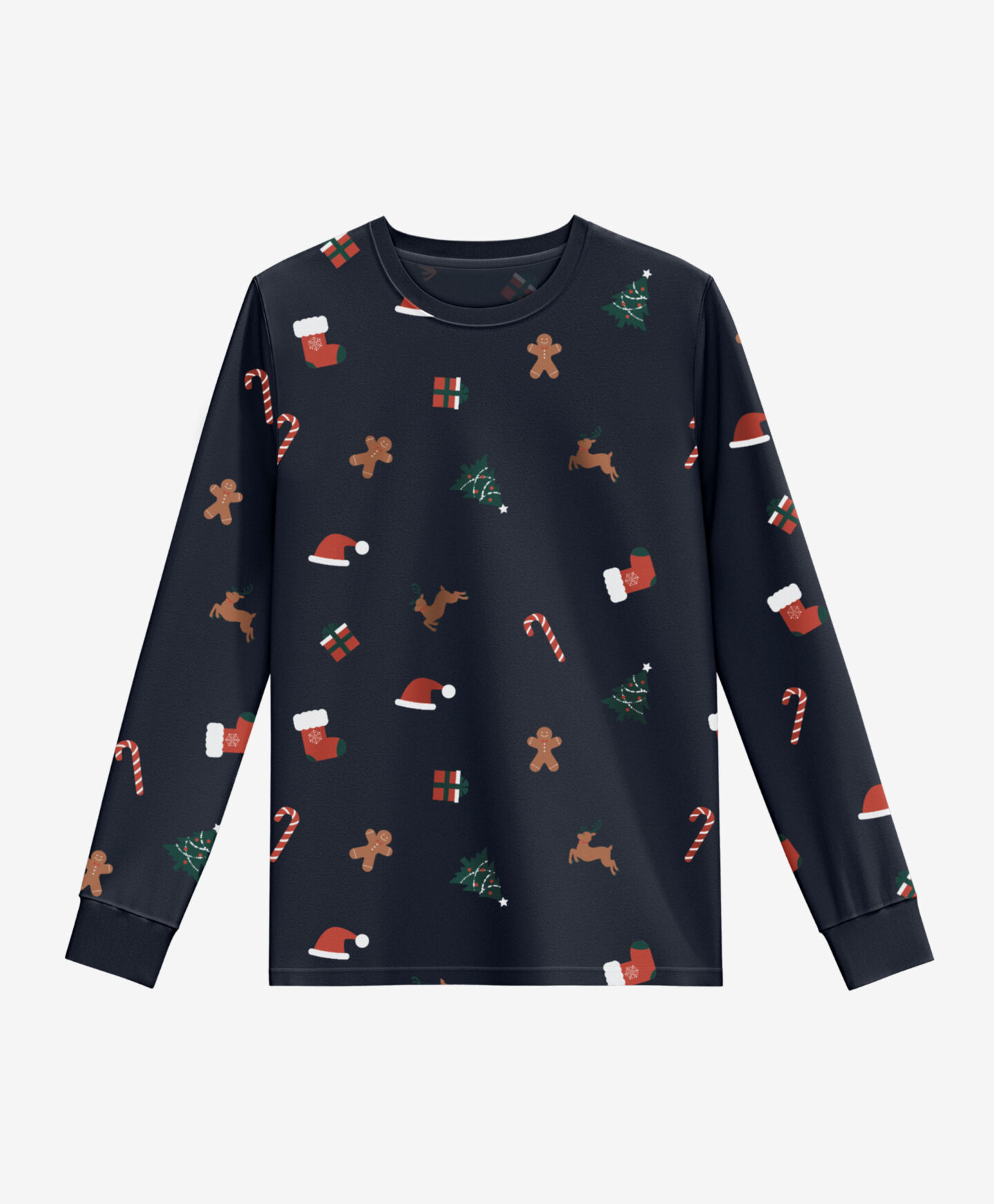 Pidžama za dečake sa prazničnim dezenom obradovaće svakog pospanka. Napravljene od mekog, prozračnog pamuka, udobno će ušuškati vašeg mališana u krevet. Komplet sadrži majicu dugih rukava i pantalone, što ga čini savršenim za hladne zimske noći. Svečani uzorak će dodati dašak čarolije dugim večerima provedenim u udobnosti doma.