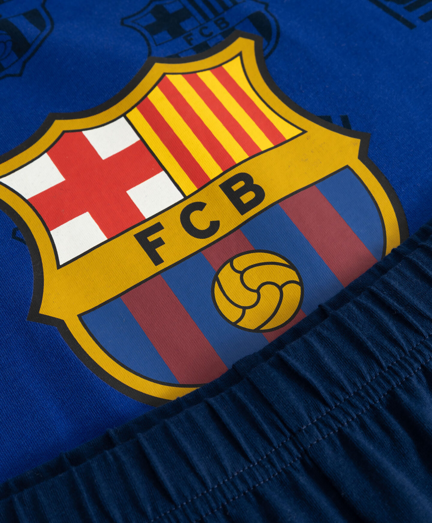 Pidžama za dečake FC Barcelona 100% pamuk, oduševiće svakog pravog navijača ovog fudbalskog kluba. Set se sastoji od majice kratkih rukava i šortsa u bojama čuvenog kluba. Napravljena od mekanog i prozračnog materijala, ova pidžama je savršen izbor za sve koji uživaju u slatkom odmoru.