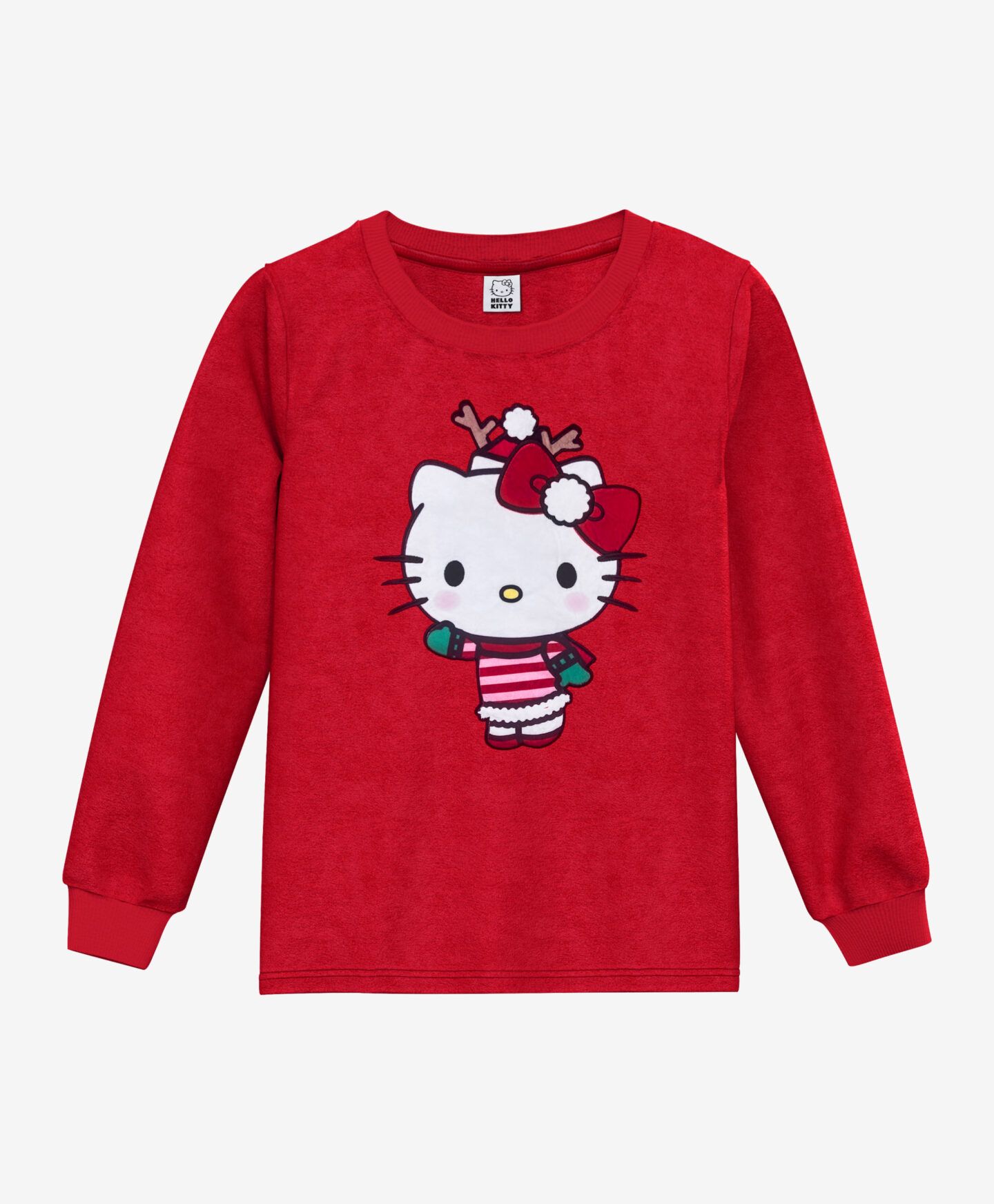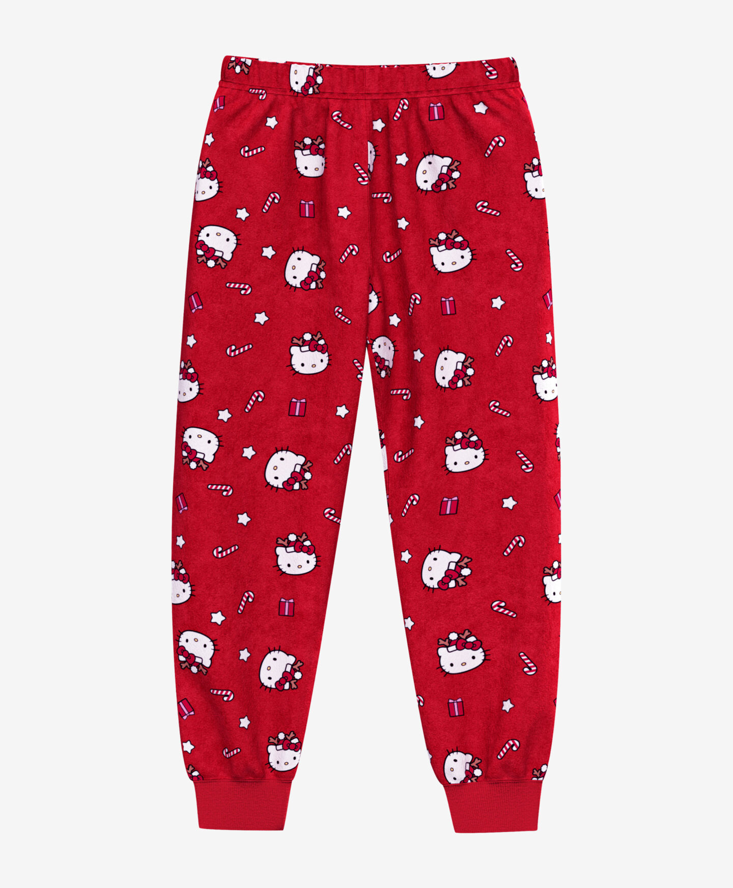 Hello Kitty pižama za devojčice je poklon iz snova za svakog ljubitelja ovog poznatog lika! Majica ukrašena prazničnom aplikacijom obezbediće udobnost vašem detetu tokom spavanja. Pamučni donji deo sa dezenom poklona i likom Hello Kitty je prozračan i nežno se obavija oko kože, garantujući slobodu pokreta i bezbrižan odmor deteta.
