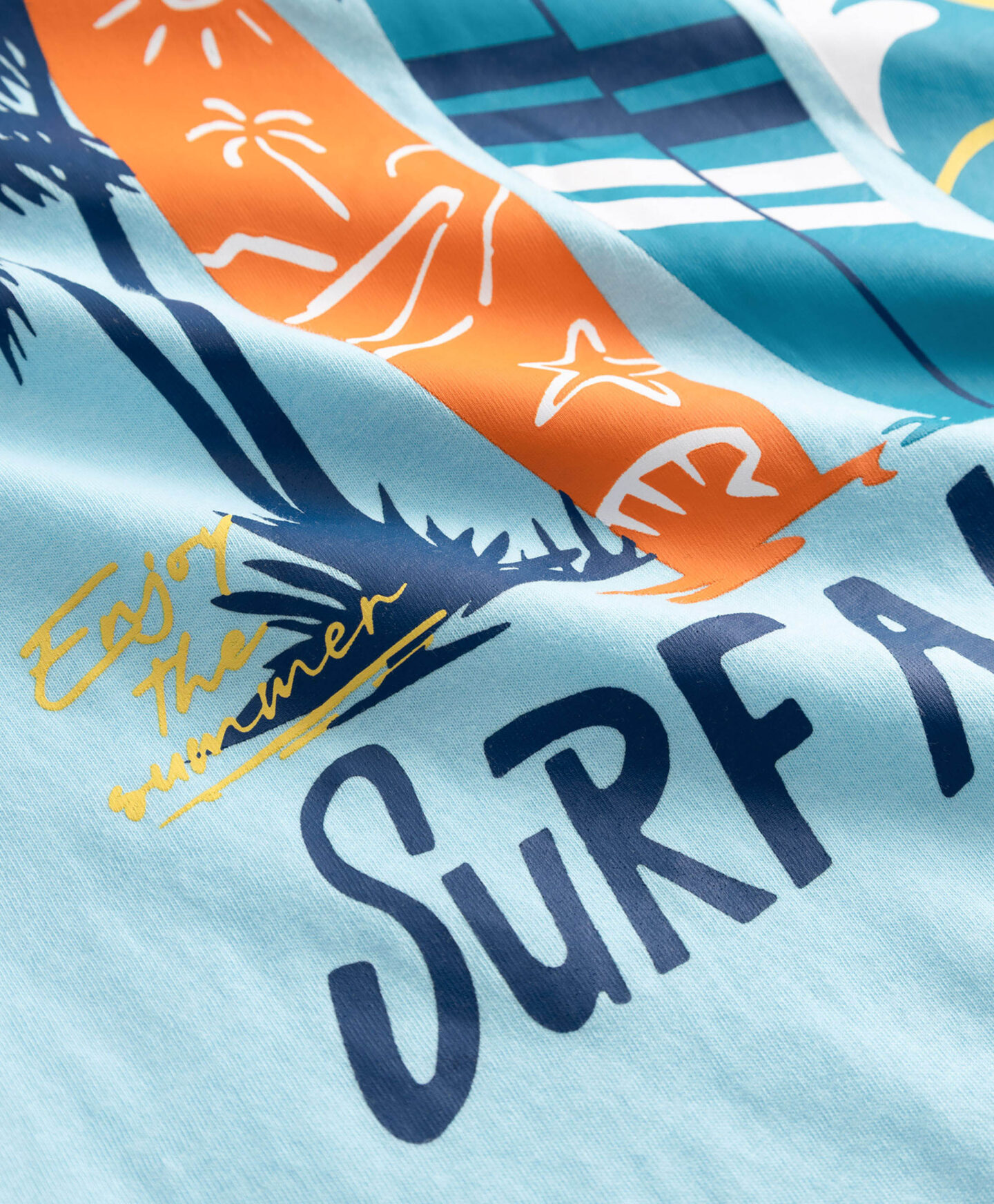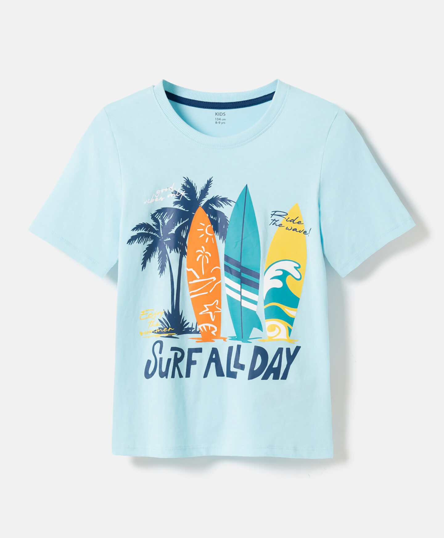Ova plava majica za dečake od 100% pamuka savršen je izbor za mlade ljubitelje surfovanja. Pamuk je izuzetno mekan na dodir i pruža udobnost čak i tokom celodnevnog boravka na suncu.