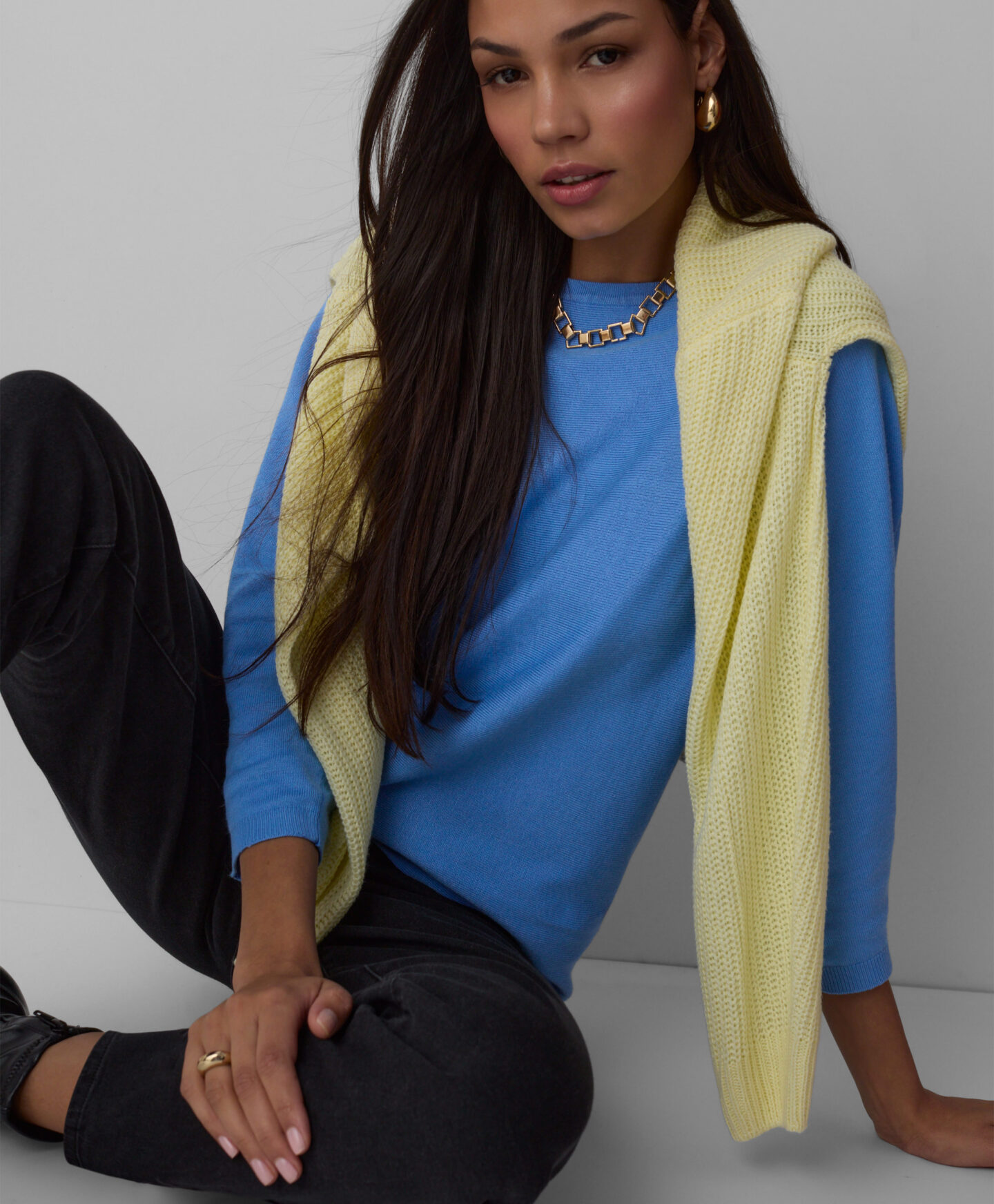 Plavi džemper za žene od viskoze je prijatan na dodir, topao i izuzetno lak za kombinovanje. Idealan je za različite prilike. Pruža slobodu pokreta i daje lakoću svakoj odevnoj kombinaciji. Savršen je za kancelariju, izlazak na kafu sa prijateljicom ili romantični sastanak. Dostupan je u dve boje.