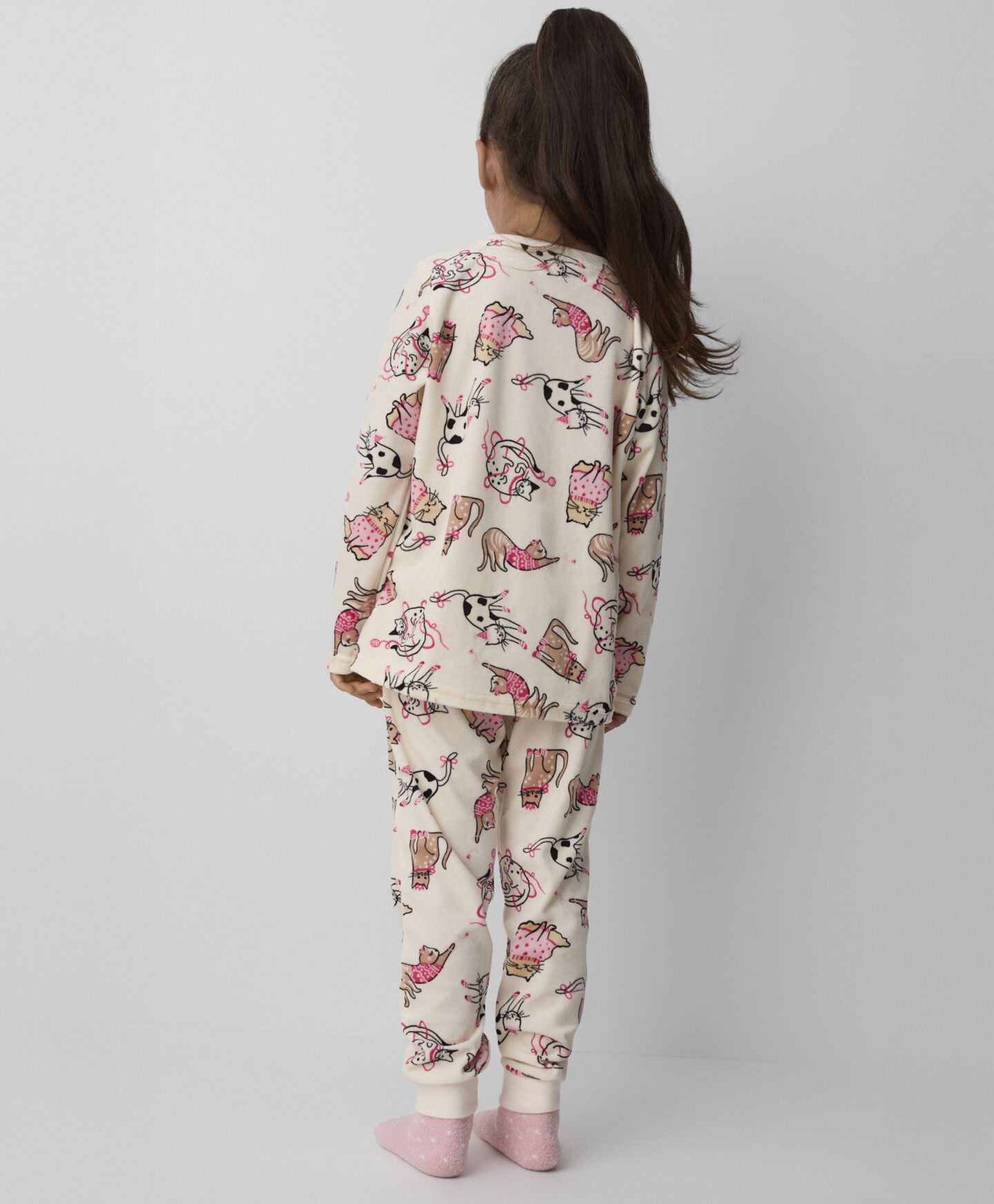 Plišana pidžama za devojčice sa dezenom mačaka je savršen izbor za male obožavateljke ovih životinja. Napravljena od mekog i prijatnog pliša na dodir, pruža udobnost za spavanje i slobodu kretanja. Dezen sa motivima mačaka učiniće da je svaka devojčica rado oblači pred spavanje. Idealna je za hladnije noći, jer pruža toplinu i udobnost.