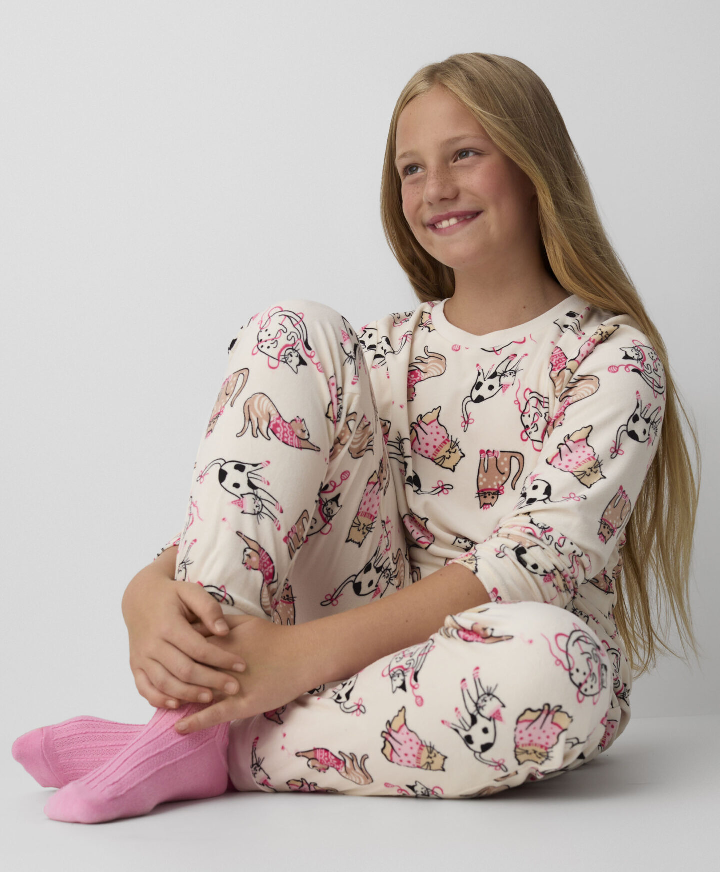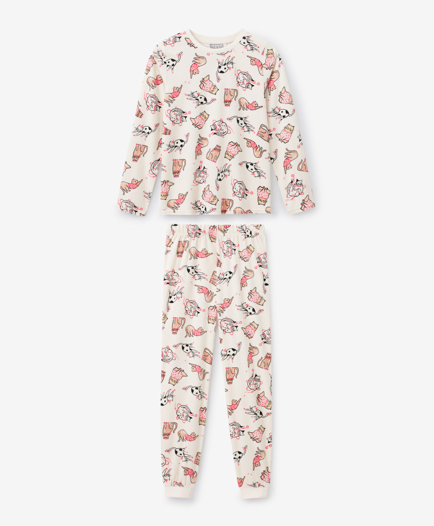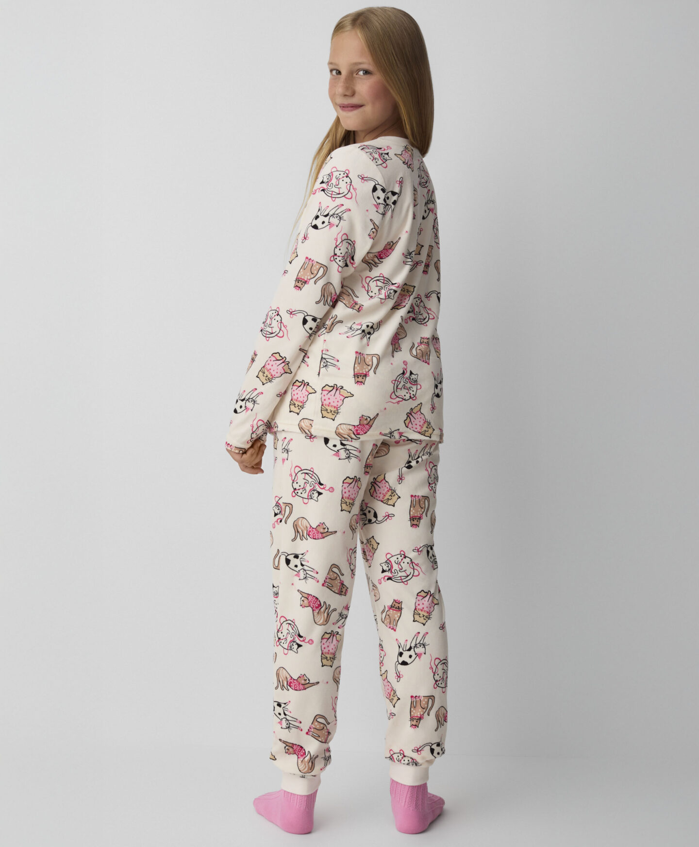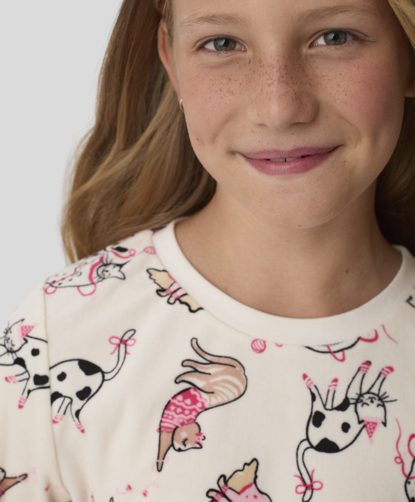 Plišana pidžama za devojčice sa dezenom mačaka obezbeđuje udobnost za spavanje i slobodu kretanja. Napravljena od mekog i prijatnog pliša, pruža toplinu i udobnost. Dezen sa motivima mačaka učiniće da je svaka devojčica rado oblači pred spavanje. Idealna je za hladnije noći. Odličan izbor za ljubitelje mačaka.