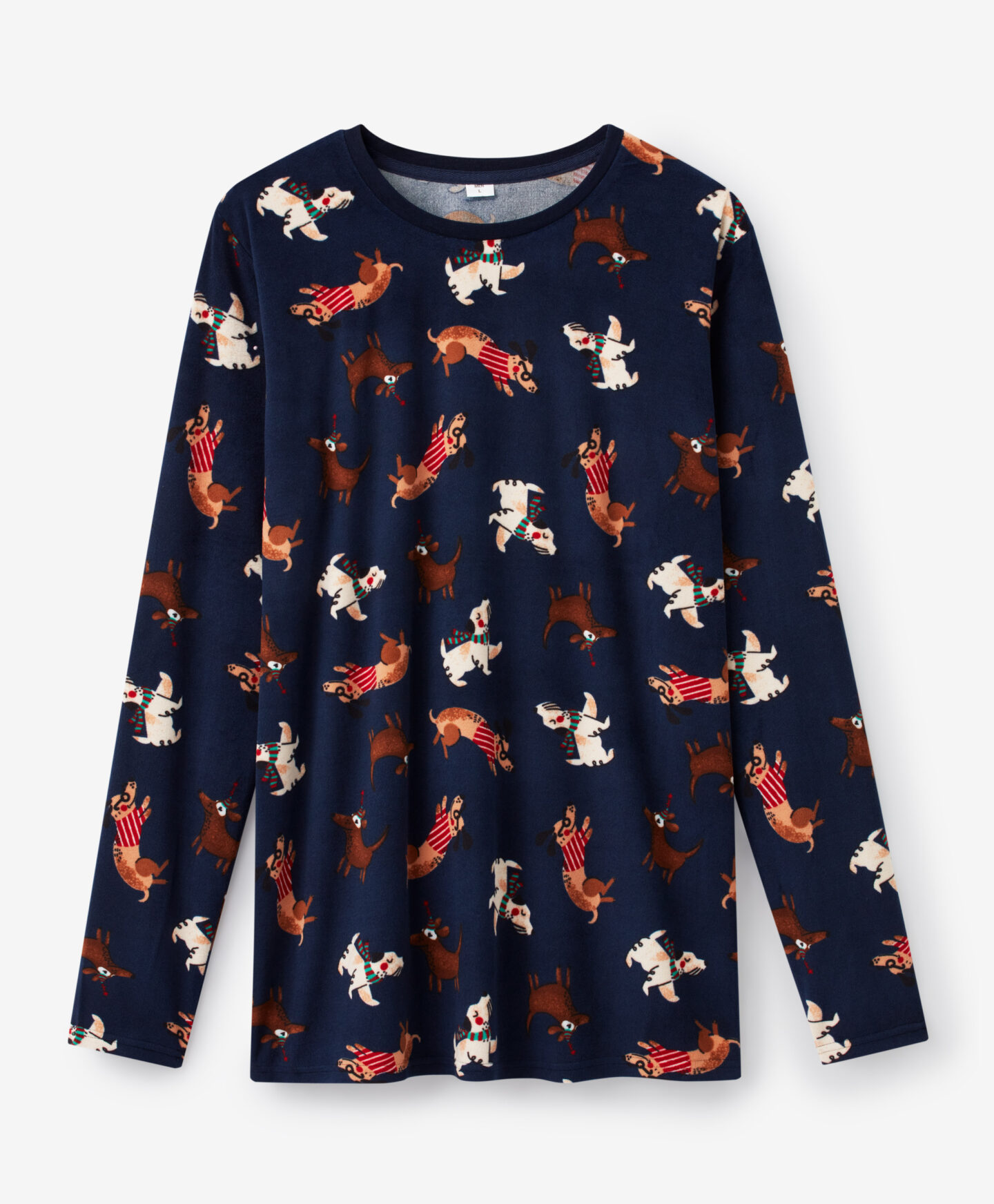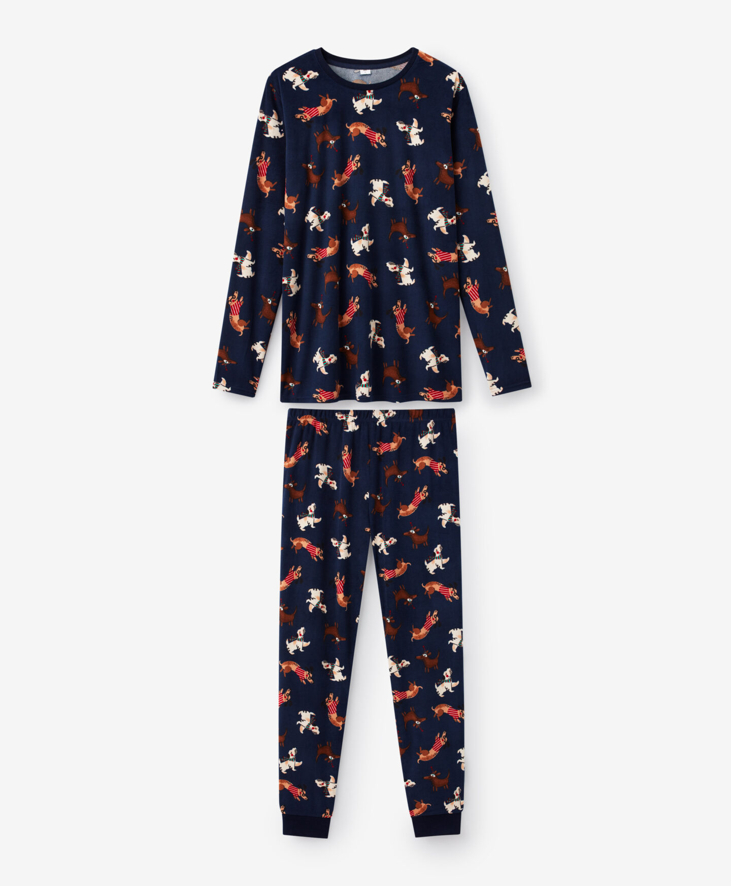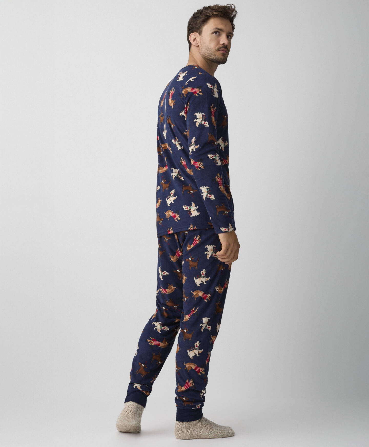 Plišana pidžama za muškarce sa dezenom pasa idealna je za hladnije dane. Napravljena od mekog i prijatnog pliša, pruža toplinu, udobnost za spavanje i osećaj ušuškanosti. Razigrani dezen sa motivima pasa učiniće da je svake večeri poželite obući pre spavanja. Idealna je za ljubitelje pasa.