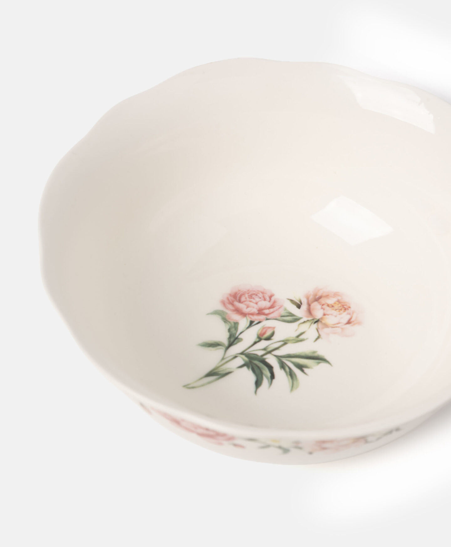 Mala porcelanska činija za salatu sa cvetnim motivom osvaja svojim dizajnom. Napravljena je od New Bone China porcelana, koji se odlikuje kremasto belom bojom i suptilnim sjajem. Činija je odličan izbor za sve koji traže elegantno posuđe po pristupačnoj ceni. U našoj ponudi dostupni su i odgovarajući tanjiri i čajnik.