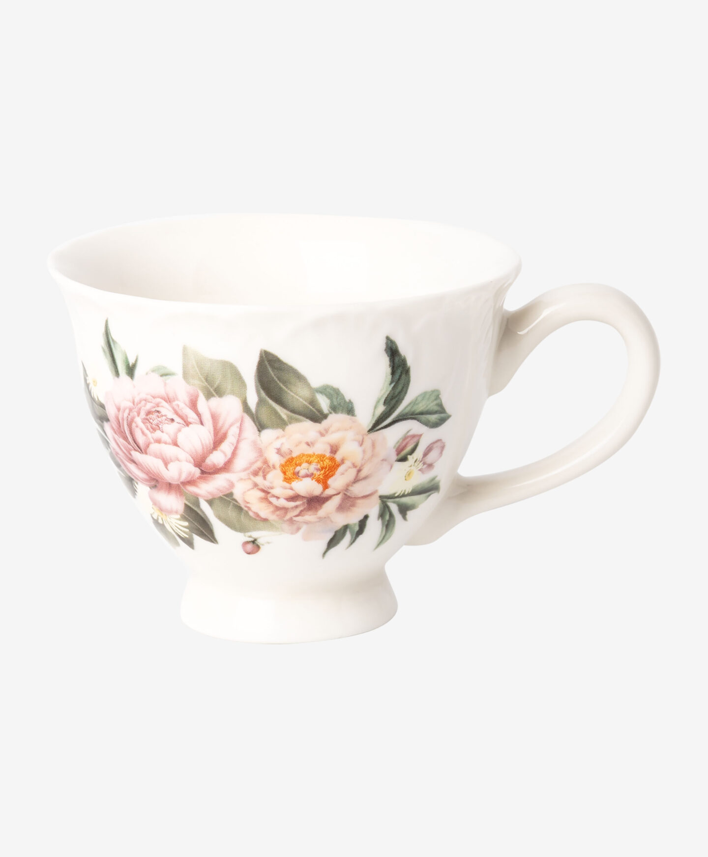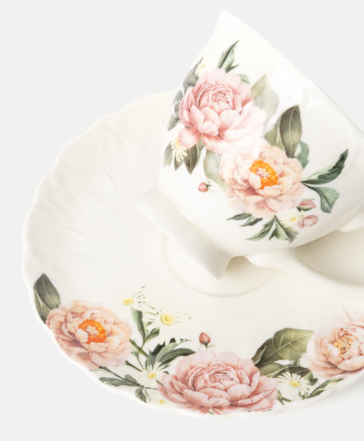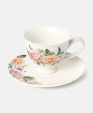 Porcelanska šolja sa tacnom sa cvetnim motivom napravljena je od izdržljivog New Bone China porcelana. Odličan je izbor kako za svakodnevnu upotrebu, tako i za posebne prilike. Prolećni dizajn dodaće šarm svakom trenutku uz omiljeni napitak. Šolja je savršena za serviranje mirisne kafe, čaja sa limunom ili tople čokolade. U našoj ponudi dostupno je i odgovarajuće posuđe u istom dezenu.