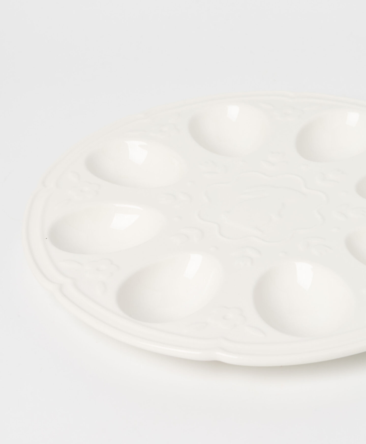 Porcelanski poslužavnik za jaja savršen je za serviranje prazničnog doručka. Elegantan je način da poslužite punjena jaja, tvrdo kuvana ili meko kuvana jaja. Može poslužiti i kao šarmantna dekoracija na trpezi ili kao postolje za vaša ručno ukrašena uskršnja jaja.