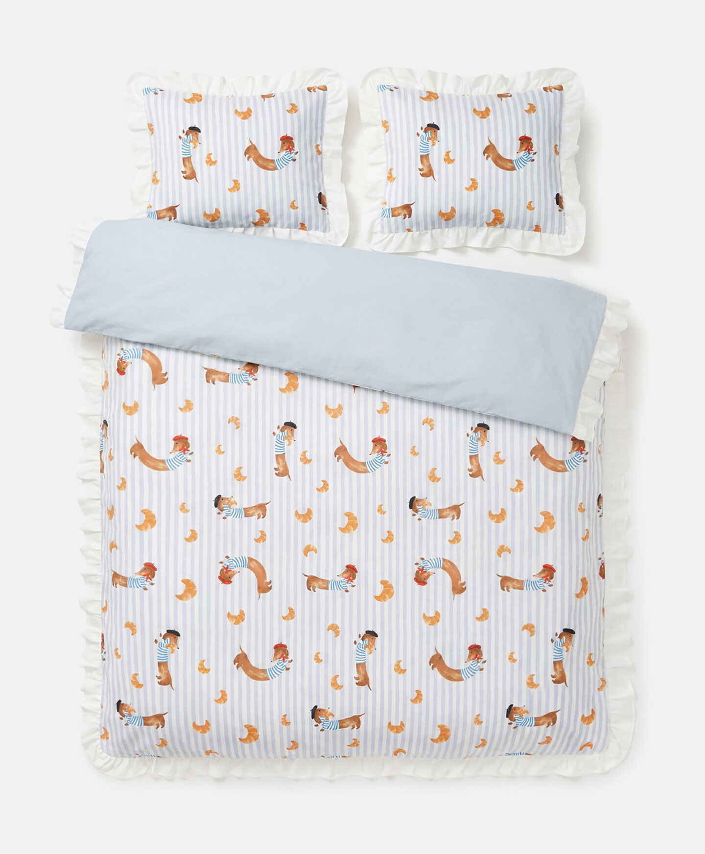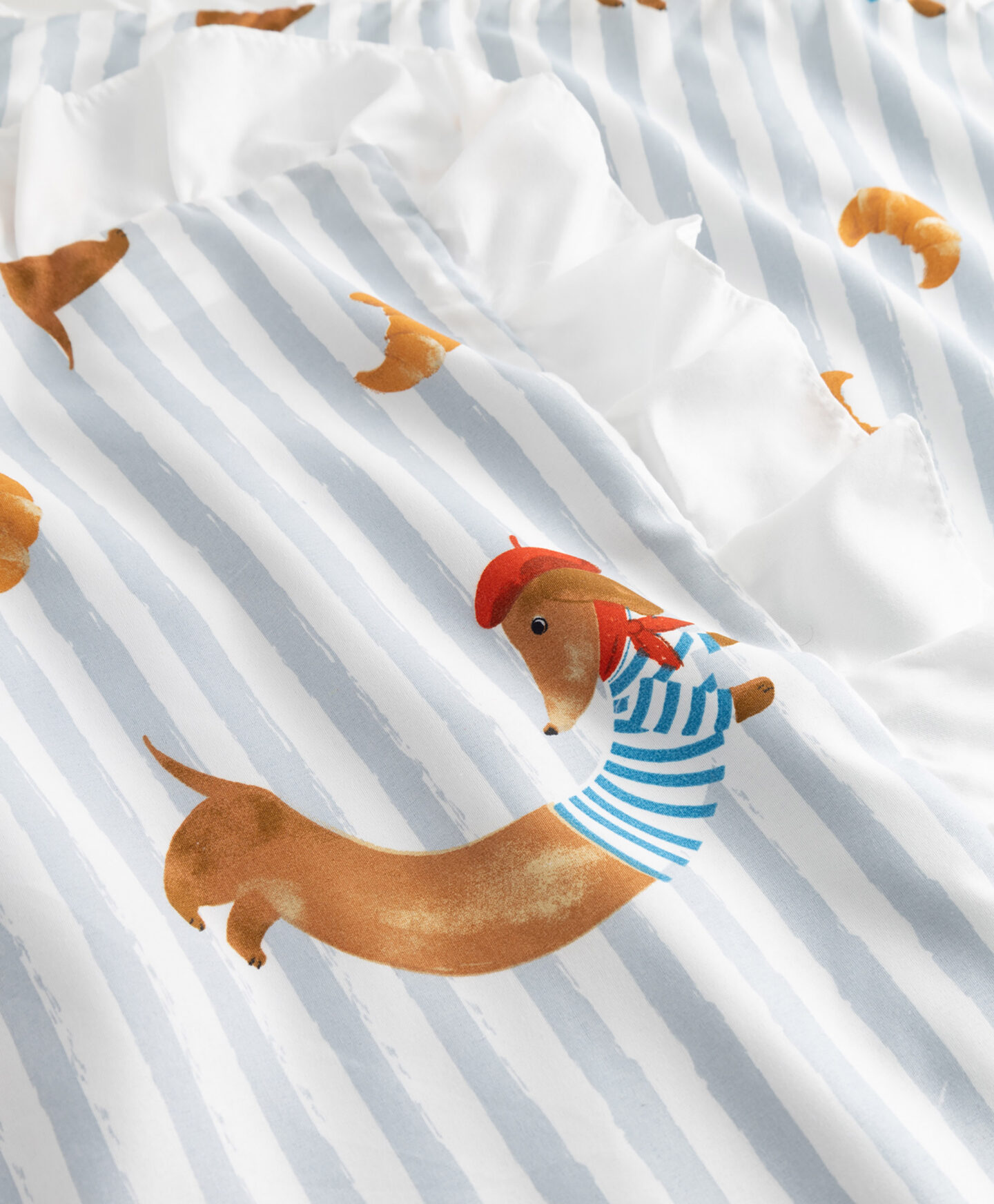 Ovaj set posteljine dimenzija 200 × 220 cm sa motivom jazavičara savršen je za sve koji traže modernu posteljinu za svoju spavaću sobu. Bela boja u kombinaciji sa preslatkim psima sa beretkama unosi dozu elegancije u svaki enterijer. Set sadrži navlaku za jorgan dimenzija 200 × 200 cm i dve jastučnice dimenzija 50 × 60 cm.