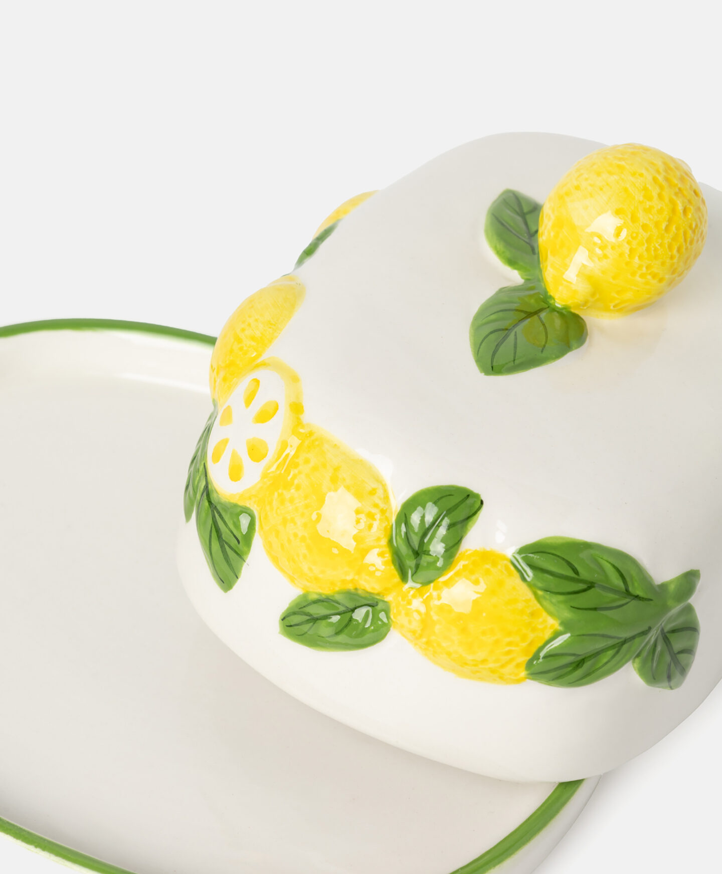 Ova posuda za puter od dolomita sa reljefnim motivom limuna uneće letnju atmosferu u vašu kuhinju! Poklopac štiti puter i čuva njegovu svežinu i ukus. Savršena je za svakodnevnu upotrebu. Dolomit je izdržljiv materijal, otporan na ogrebotine i temperaturne promene, što obezbeđuje dugotrajnu upotrebu bez gubitka lepog izgleda.
