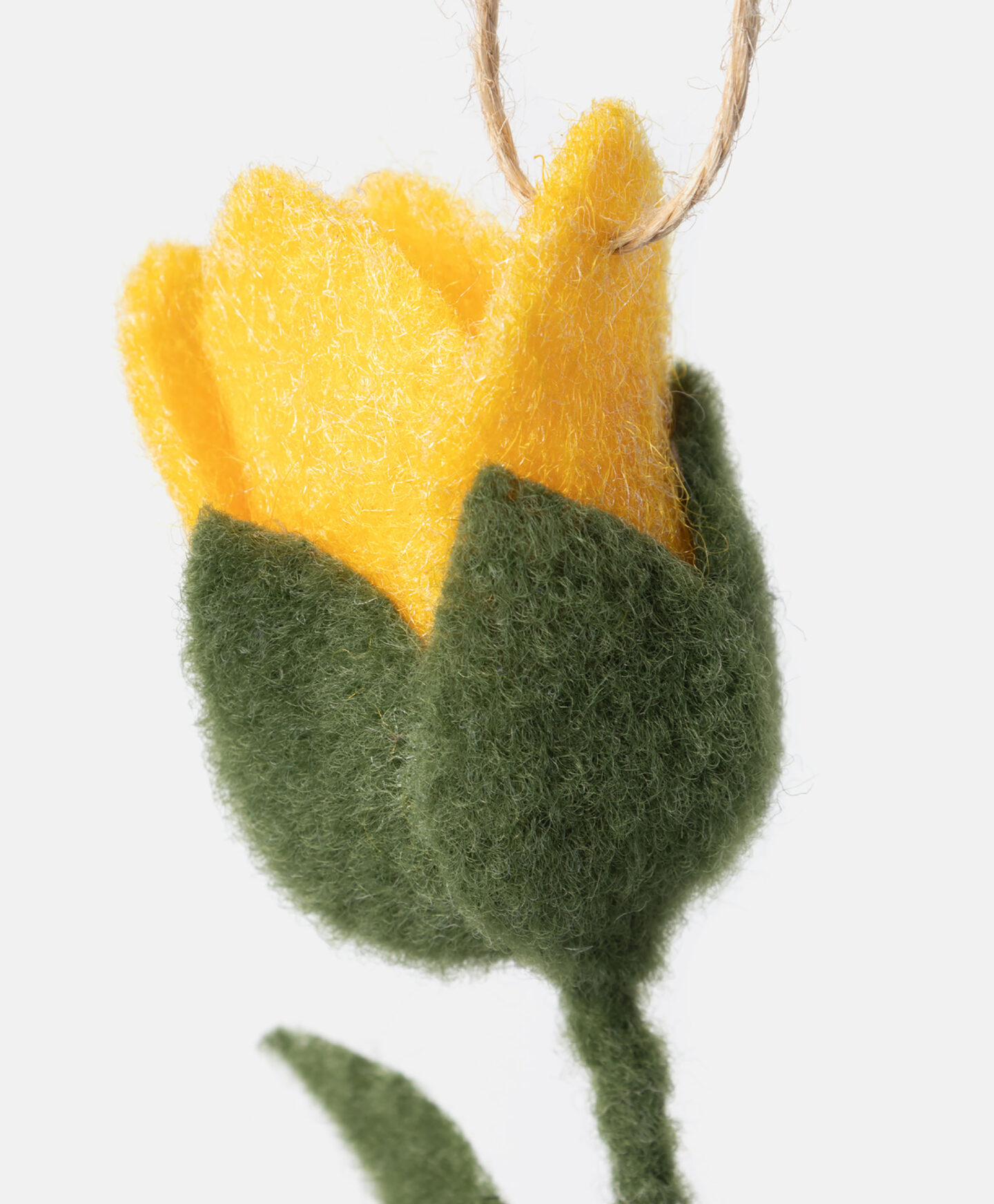 Privezak od filca u obliku žute lale ulepšaće svaki prolećni aranžman. Okačite ga na grane postavljene u vazi i oduševite sve ukućane. Filc je prijatan na dodir i unosi dodatnu toplinu u prostor. Ovaj ukras je i sjajna ideja za poklon svima koji vole cvetne motive.