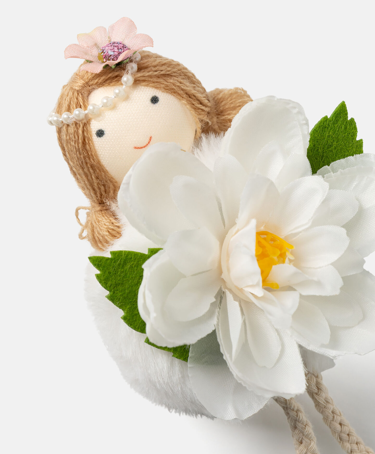 Privezak u obliku devojčice sa belim cvetom je šarmantna dekoracija izrađena od mekog tekstila koji unosi dašak prolećne lakoće u svaki enterijer. Savršena je kao deo aranžmana, ukras za dečiju sobu ili kao privezak za torbu ili ranac. Lagan je, mekan i jednostavan za održavanje. Dostupno u više dezena.