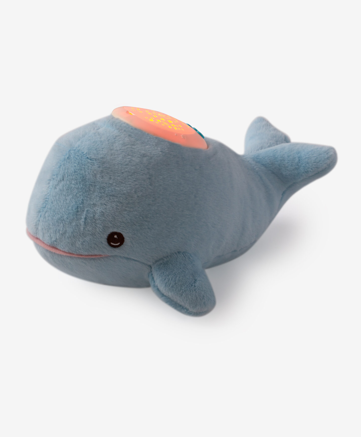 Projektor u obliku kita kombinuje funkciju plišane igračke i noćne lampe. Kada se uključi, nežna svetlost se projektuje na plafon i zidove, umirujući dete i olakšavajući mu da zaspi. Zbog mekanog materijala odličan je za grljenje, a umirujuća muzika uvodi dete u pospano stanje. Baterije se prodaju odvojeno.