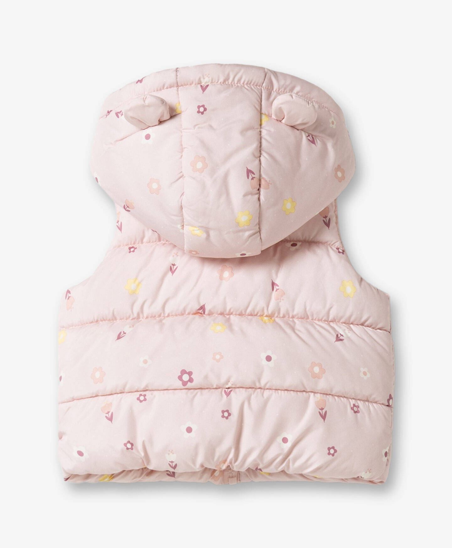 Prsluk za bebe devojčice sa cvetnim dezenom savršen je izbor za malu modnu zvezdu. Lagan je, mekan i topao. Kapuljača sa ušima nije samo preslatka, već i dodatno greje tokom hladnijih dana. Odlično izgleda preko džempera ili duksa i pruža toplinu tokom šetnje u kolicima ili igre u pesku. Klasičan kroj omogućava nesmetano kretanje i potpunu udobnost.