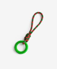 Igračka za pse – tegljač sa prstenom kombinuje pleteni konopac i fleksibilan prsten. Struktura prstena podstiče hvatanje i žvakanje, dok je omča na drugoj strani savršena za tegljanje. Raznovrsnost oblika čini igru zanimljivijom, a tegljač savršeno angažuje psa i kod kuće i u šetnjama. Zahvaljujući njemu, svakodnevne aktivnosti dobijaju praznični karakter.