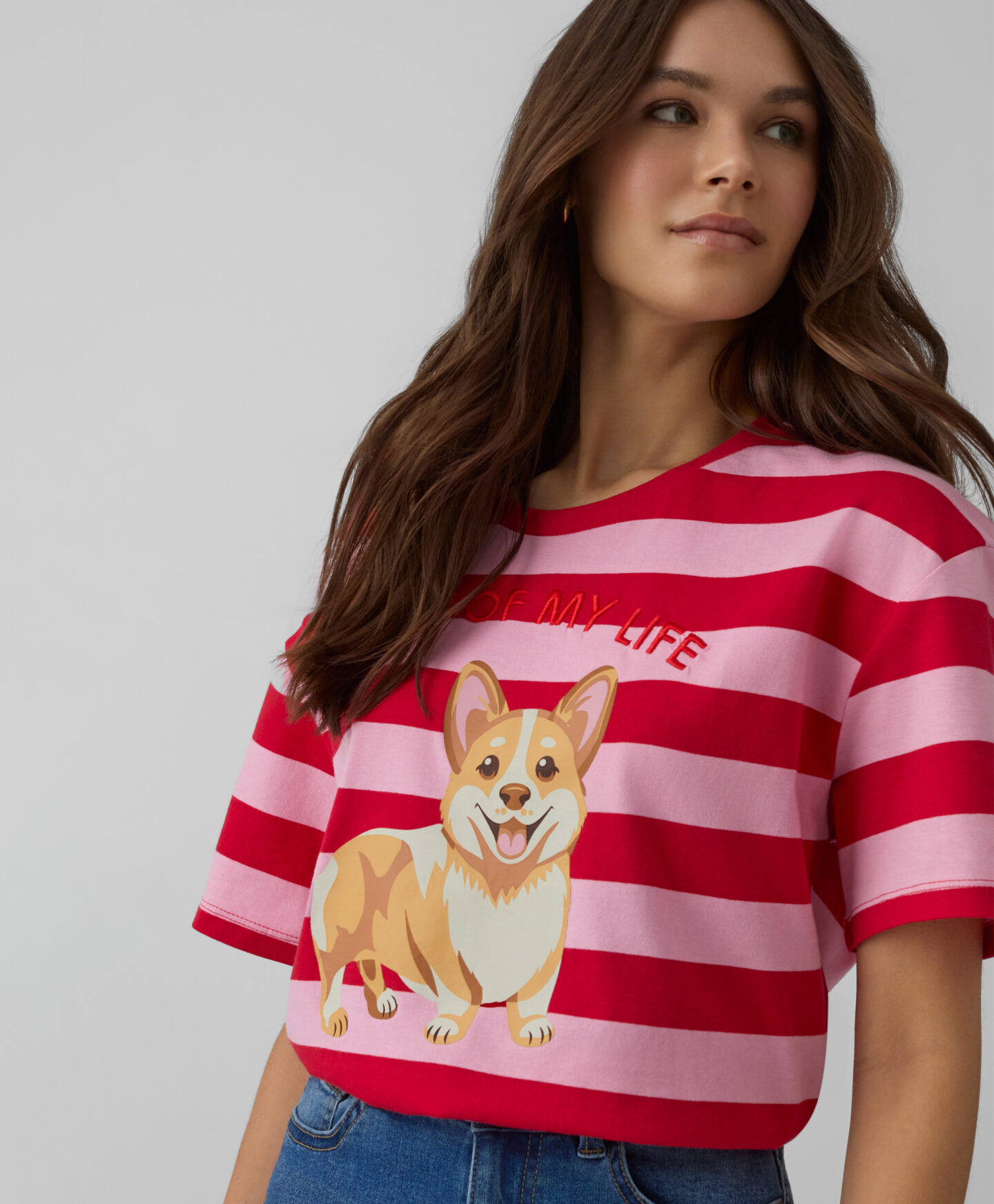 Prugasta majica za žene 100% pamuk sa printom psa i duhovitim natpisom odličan je izbor za svakodnevno nošenje. Mekana je, prozračna i prijatna za kožu. Majica se savršeno kombinuje i sa farmerkama i sa sportskim pantalonama.