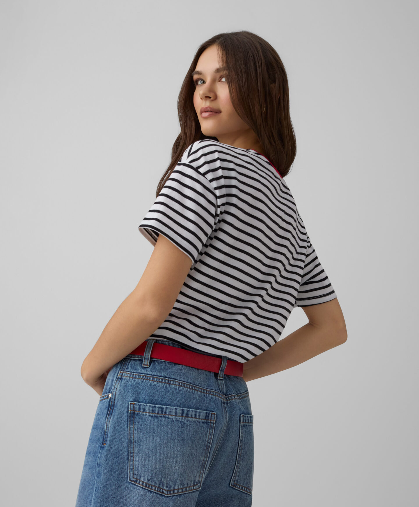 Prugasta majica za žene 100% pamuk na kratke rukave savršen je izbor za ljubiteljke udobnosti. Napravljena od prirodnog, prozračnog materijala, pruža komfor tokom celog dana. Bezvremeni prugasti dezen čini je pogodnom i za ležerne i za elegantnije kombinacije.