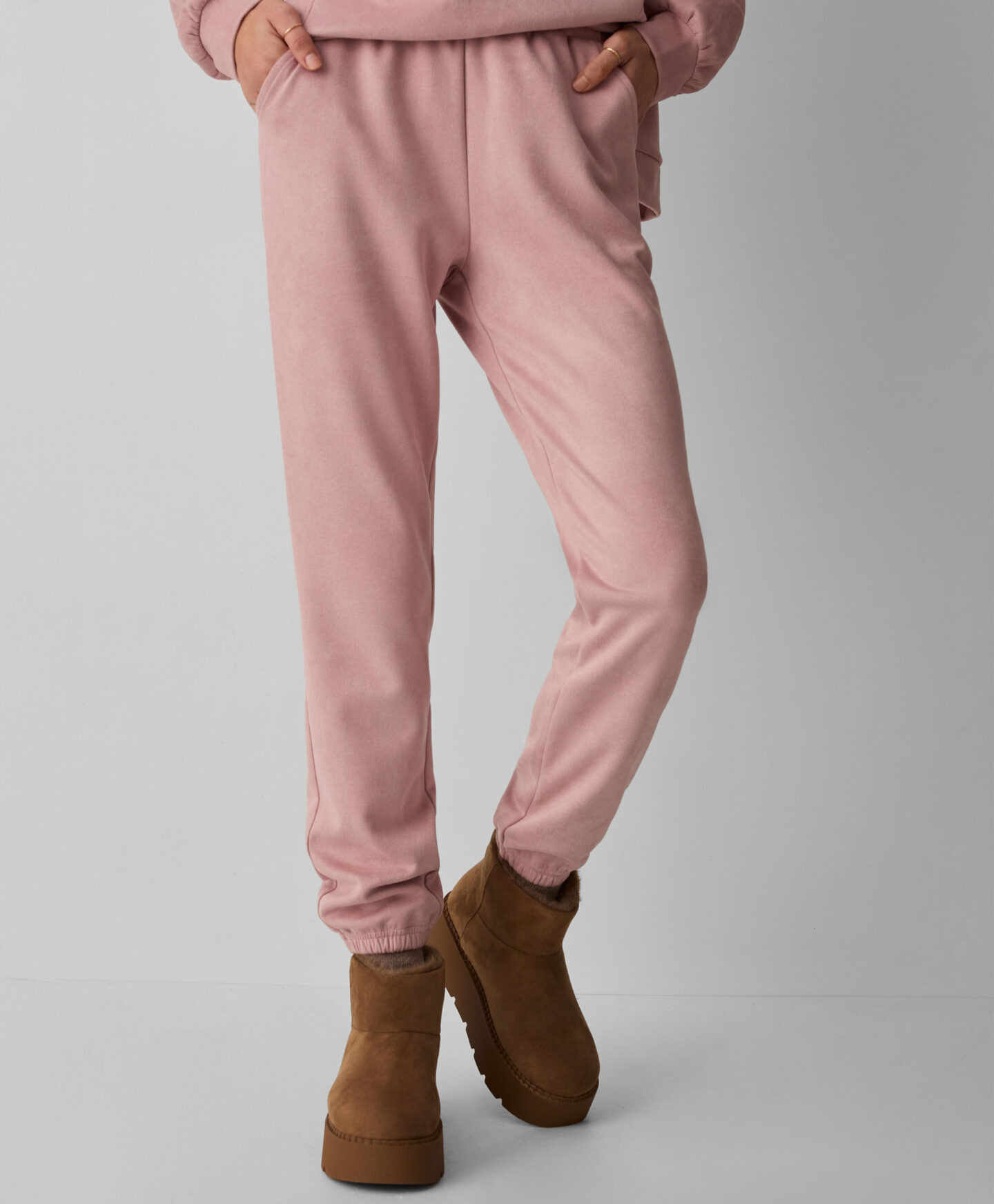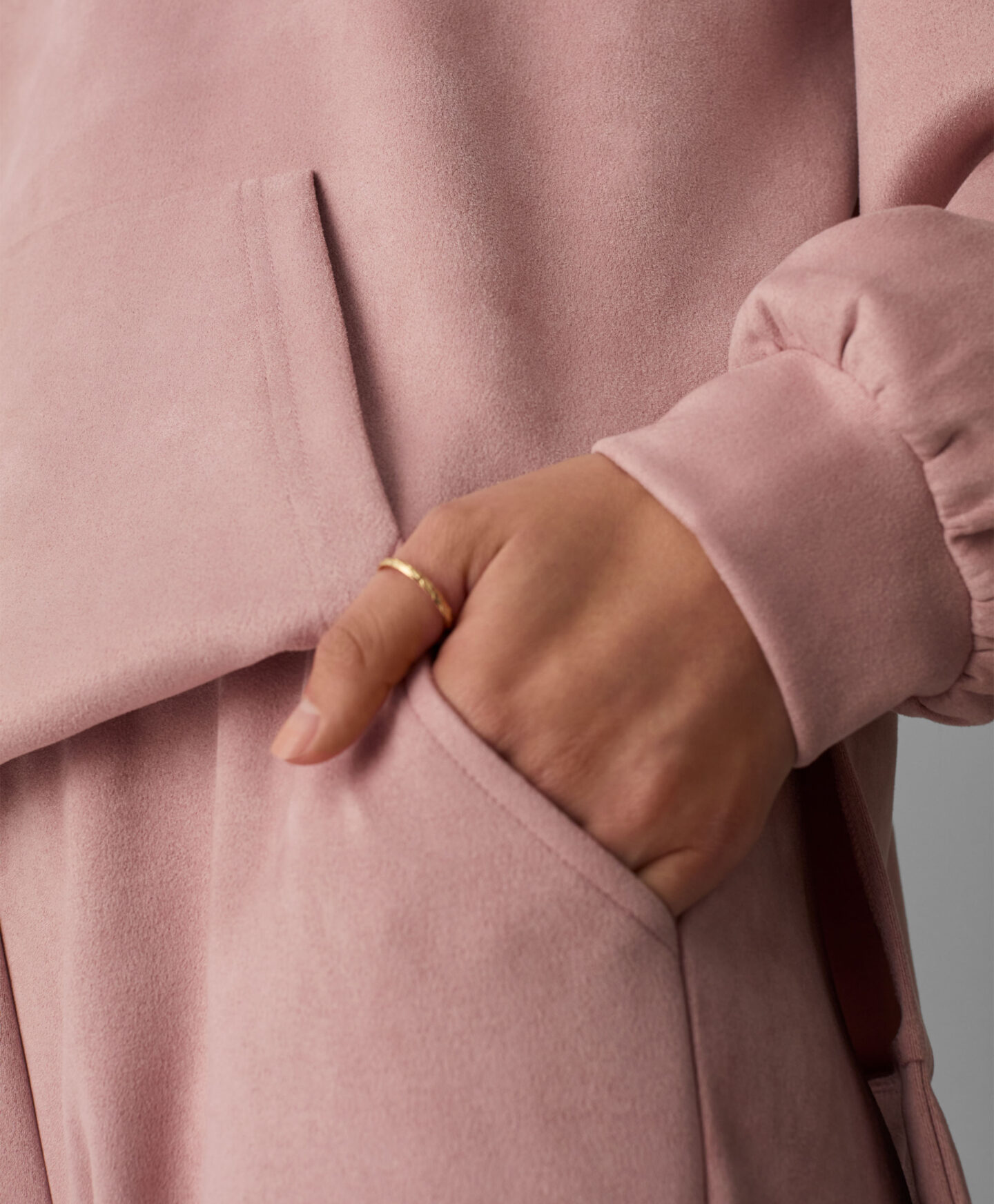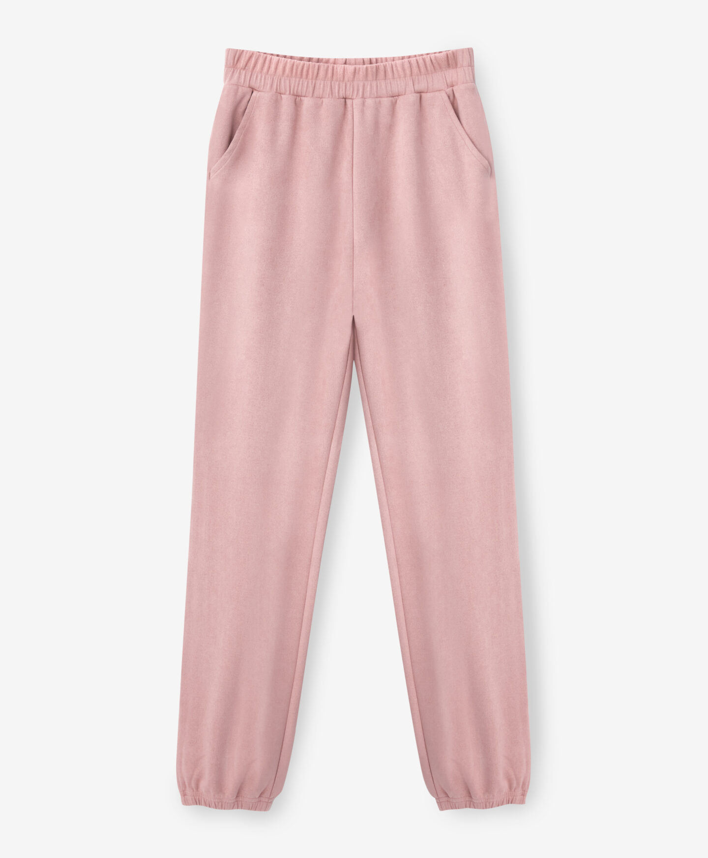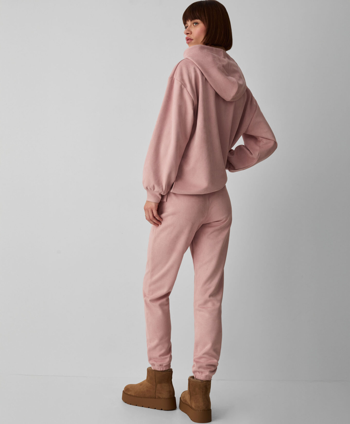 Roze antilop pantalone za žene sa džepovima su moderan i udoban izbor za svaki dan. Pantalone su mekane, prijatne na dodir i savršene za jesenje šetnje. Prigušena nijansa roze boje odlično se kombinuje sa duksom s kapuljačom iz iste kolekcije. Dostupno je više dezena.
