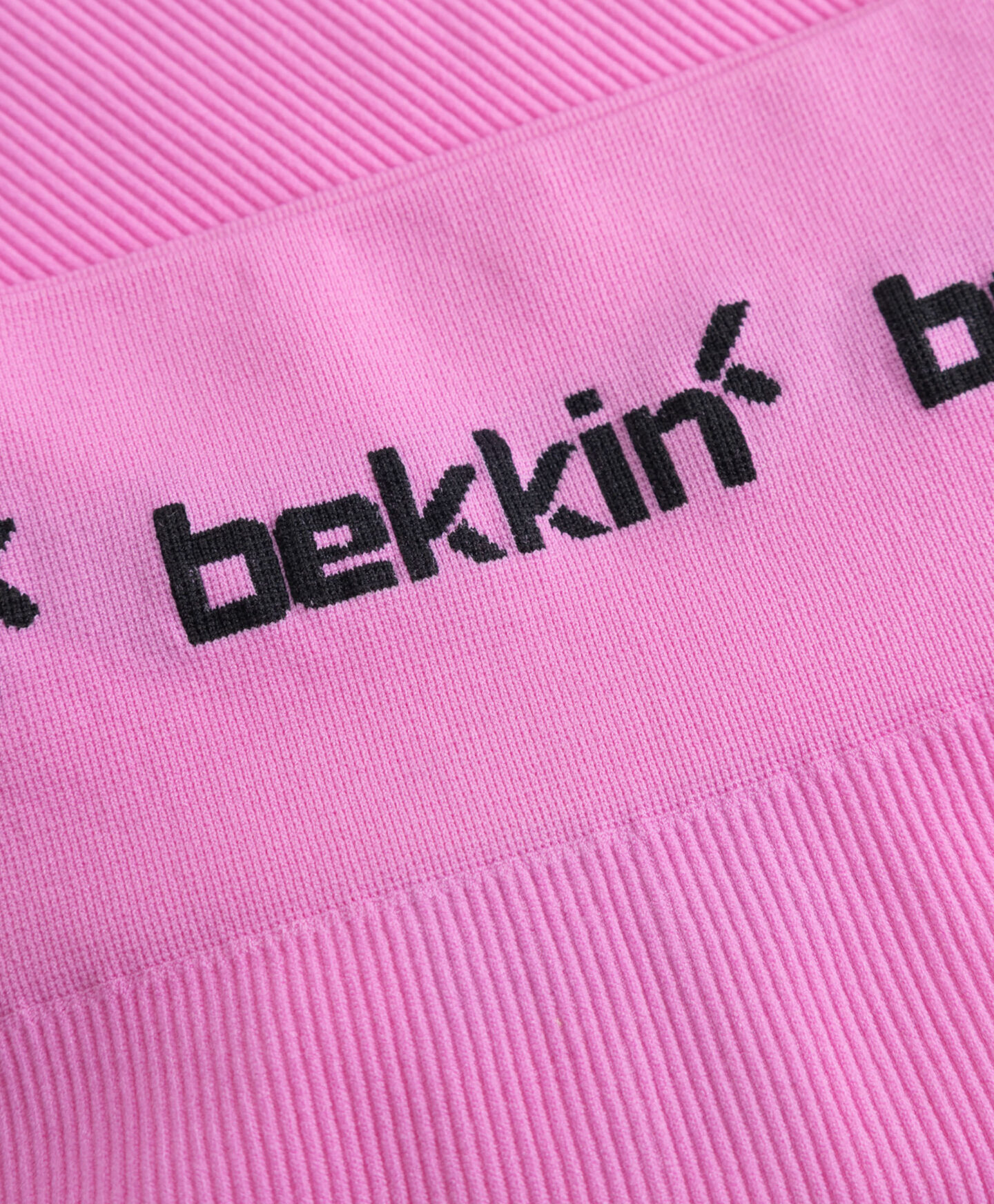 Roze helanke za devojčice Bekkin su praktičan i moderan komad garderobe. Šarmantna boja i nežne pruge će oduševiti svakog ljubitelja fizičke aktivnosti. Bešavna izrada umanjuje rizik od trenja, što helanke čini idealnim za razne vrste treninga – ples, gimnastiku ili igru na otvorenom.