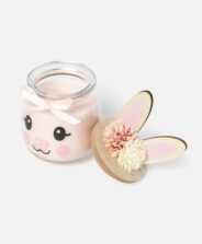Roze mirisna sveća u staklenoj čaši ima dekorativni poklopac sa 3D ušima. Dizajn inspirisan zečevima daje joj poseban šarm koji će se sigurno dopasti najmlađim članovima porodice. Ima dugo vreme gorenja i prijatan miris. Dostupna je u tri dezena.
