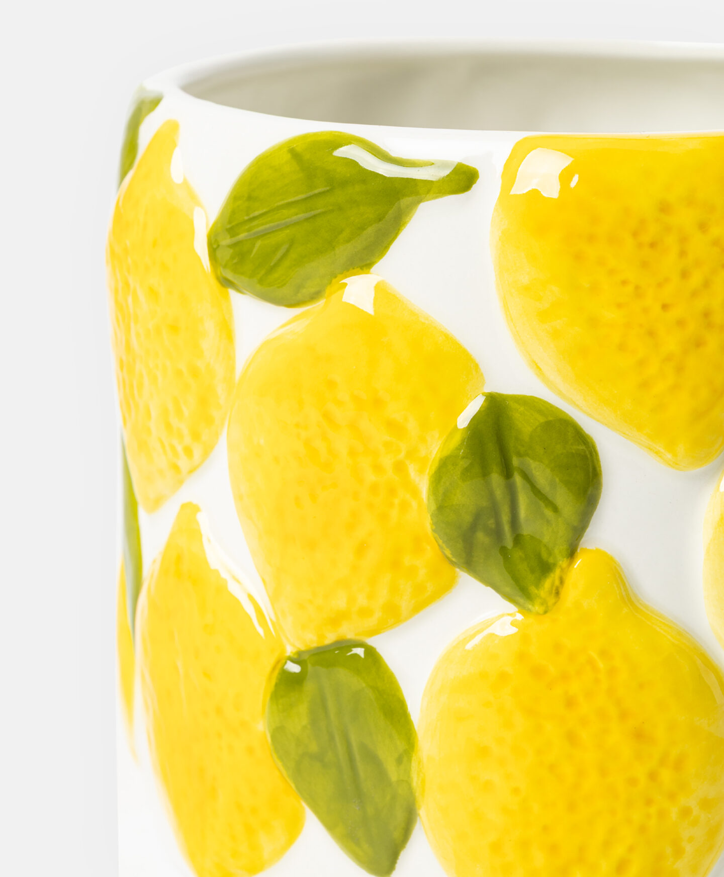 Ova saksija od dolomita sa reljefnim dezenom limuna pravi je ukras svakog prostora. Savršena je za uzgoj manjih biljaka u saksiji, sukulenata, začinskog bilja ili cveća – na prozorskoj dasci, polici ili stolu. Njen prelep dizajn, inspirisan mediteranskim pejzažima, uklopiće se u svaki enterijer. Saksija je izdržljiva i laka za održavanje.
