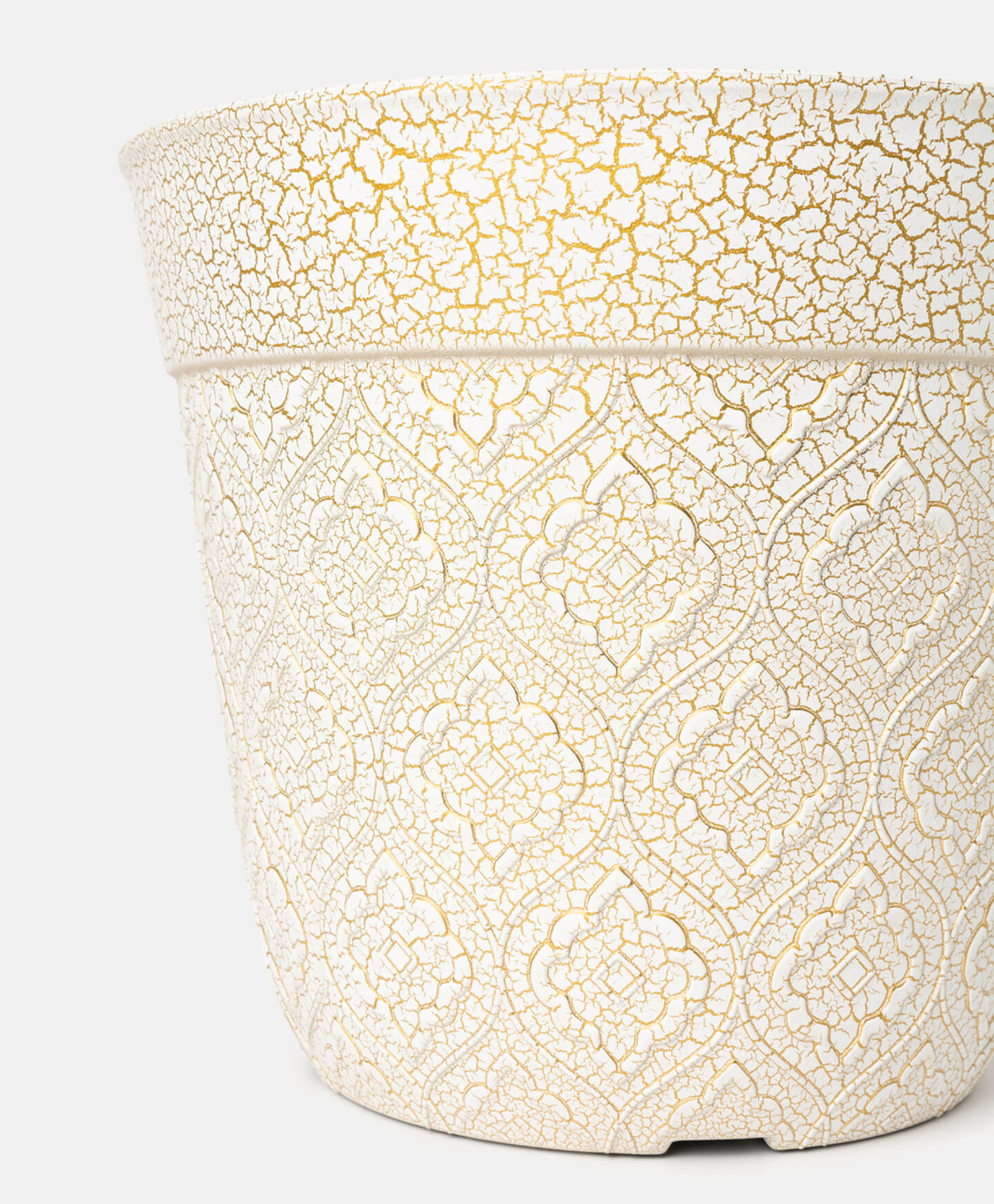 Saksija prečnika 28 cm sa dezenom privlači pažnju svojom nepravilnom strukturom. Neutralne boje savršeno se uklapaju u enterijer dnevne, spavaće ili dečije sobe, ističući lepotu vašeg cveća. Srednja veličina idealna je za uzgoj najpopularnijih sobnih biljaka, poput fikusa, monstere ili dracene. Izrađena od izdržljivog materijala, saksija je lagana i laka za održavanje.