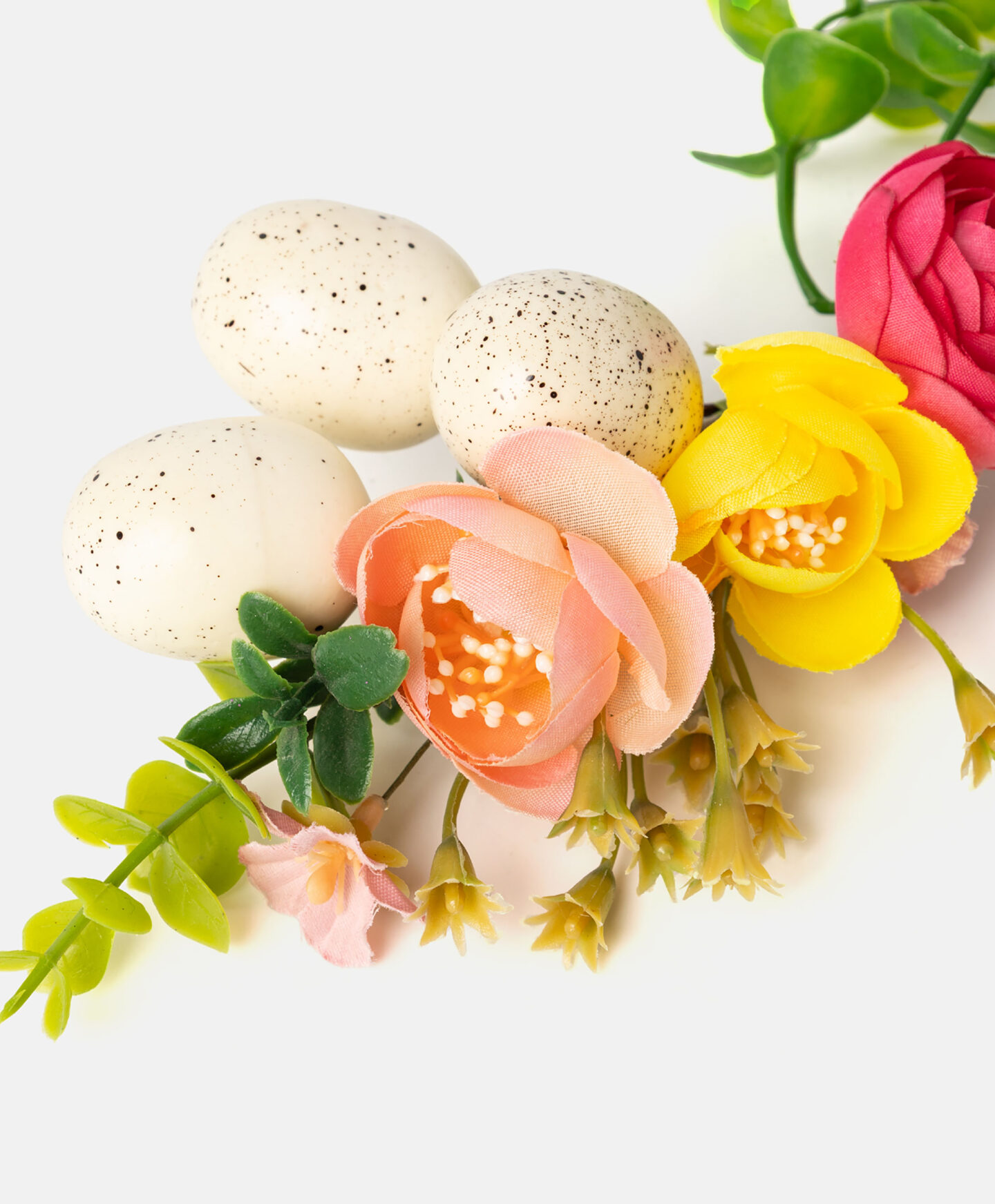 Šarena dekoracija za korpu je već spreman aranžman koji možete postaviti na dršku uskršnje korpe. Aranžman je lagan, izdržljiv i otporan na vremenske uslove. Predstavlja savršenu alternativu svežem cveću, koje možda nije dostupno u ovo doba godine. Dostupno u tri različita dezena.
