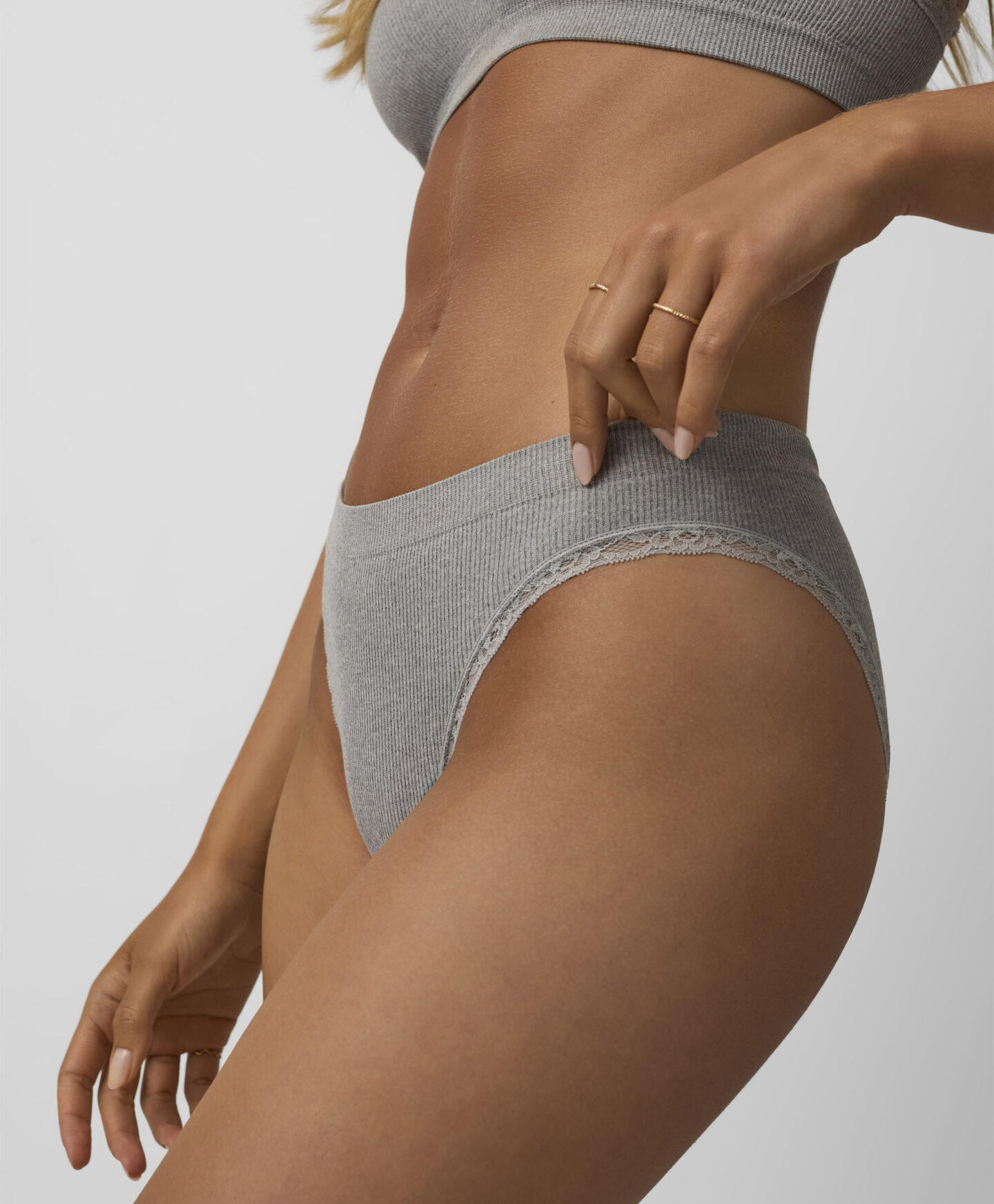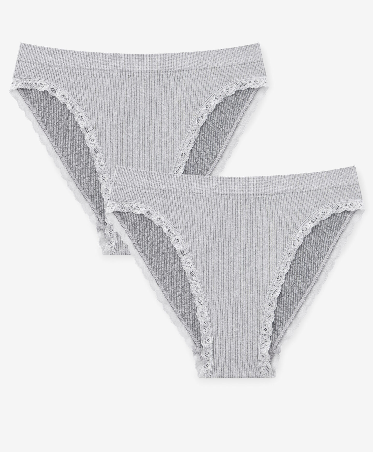 Sive bikini gaćice za žene, pakovanje od 2 komada, savršene su za ljubiteljke romantičnog donjeg veša. Čipka podstiče maštu, a gaćice su savršene za svakodnevno nošenje. Bikini kroj pruža potpunu pokrivenost i udobnost, istovremeno naglašavajući ženstvene obline.