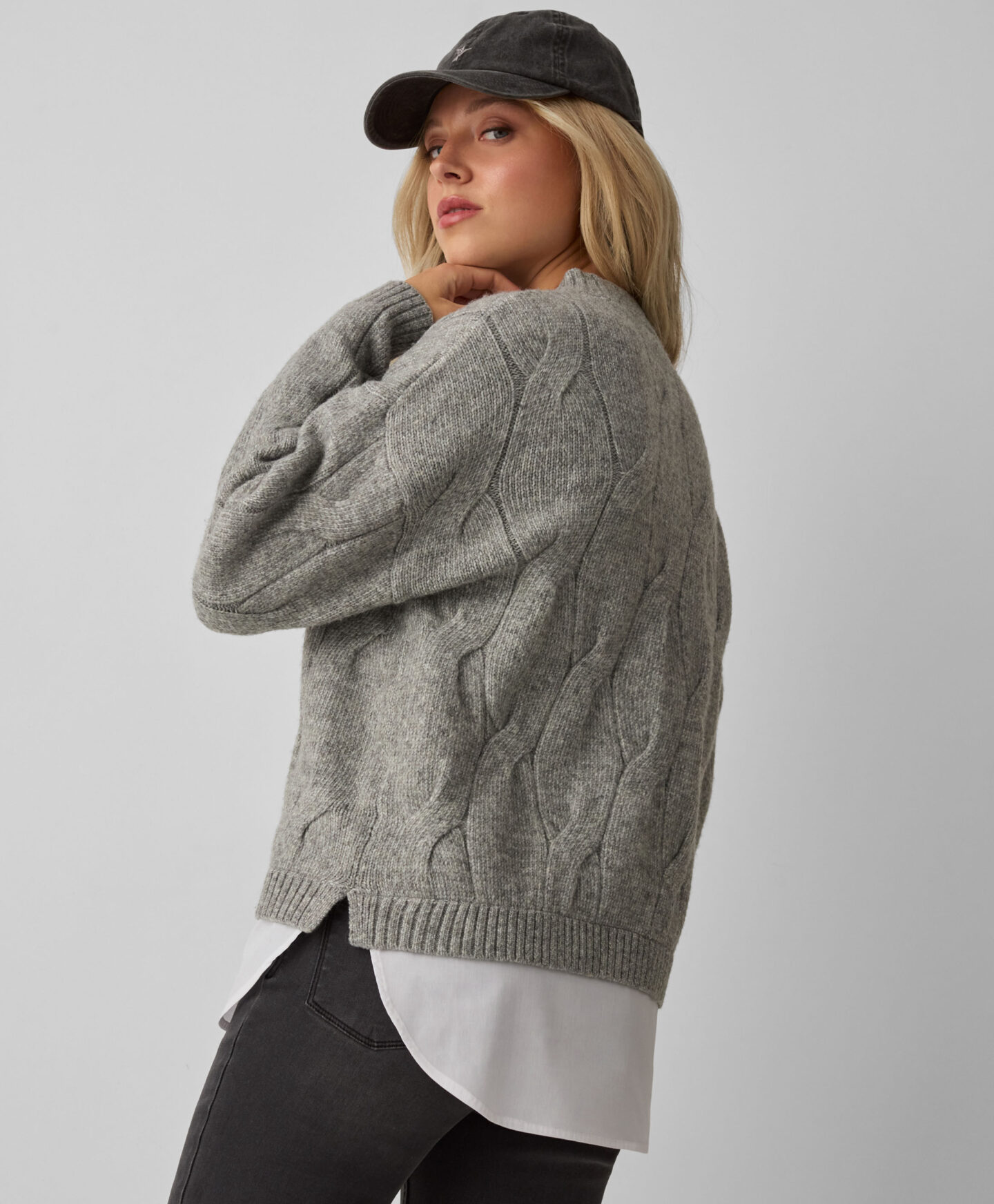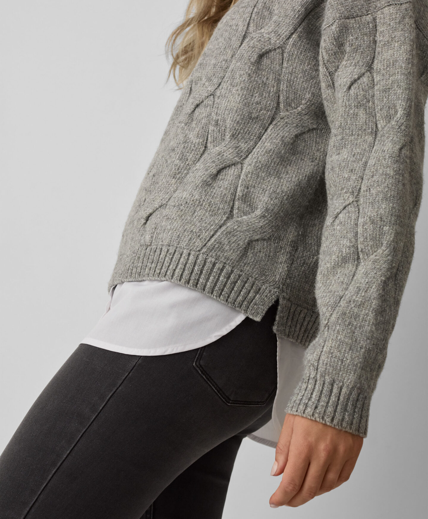 Sivi džemper sa košuljom za žene je idealan za žene koje prate trendove. Pleteni detalji su suština jesenjeg ugođaja, a kombinacija sa belom košuljom čini ga odličnim izborom za mnoge prilike. Možete ga nositi u kancelariji, na sastanku s prijateljima ili u jesenjem izlasku. Dostupan je u dve boje.
