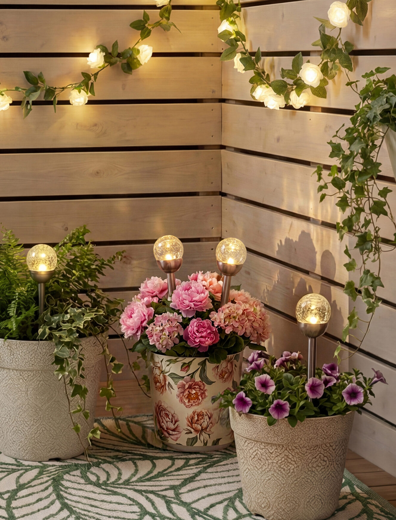 Solarna svetiljka sa efektom napuklog stakla elegantna je dekoracija koja će uneti šarm u prostor oko vašeg doma. Idealna je za baštu, balkon ili terasu. Efekat napuklog stakla na abažuru raspršuje svetlost na čaroban način. Zahvaljujući ugrađenom solarnom panelu, napaja se sunčevom energijom i radi bez kablova i baterija. Automatski se uključuje u sumrak i isključuje u zoru, pružajući osvetljenje bez potrebe za održavanjem tokom cele noći. Izrađena je od izdržljivih materijala otpornih na vremenske uslove, pa je ne oštećuju vlaga, hladnoća ni UV zračenje, što garantuje dugotrajnu upotrebu.