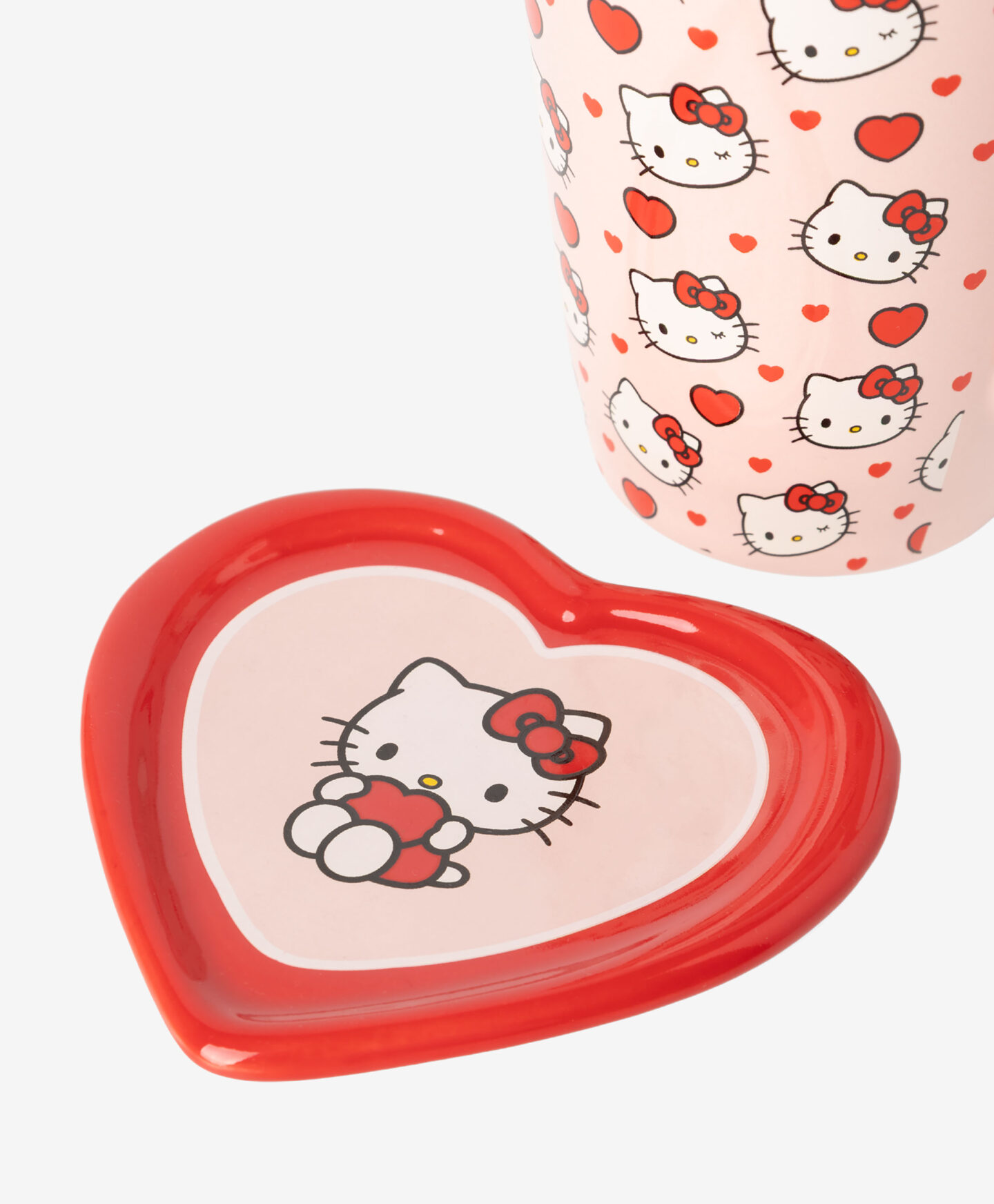 Šolja sa tacnom Hello Kitty oduševljava svojim jedinstvenim dizajnom. Savršena je za uživanje u omiljenom čaju ili aromatičnoj kafi. Tacna u obliku srca sigurno će obradovati sve obožavaoce ovog kultnog lika. Ova šolja je i odlična ideja za poklon koji će se istaći u svakoj kuhinji.