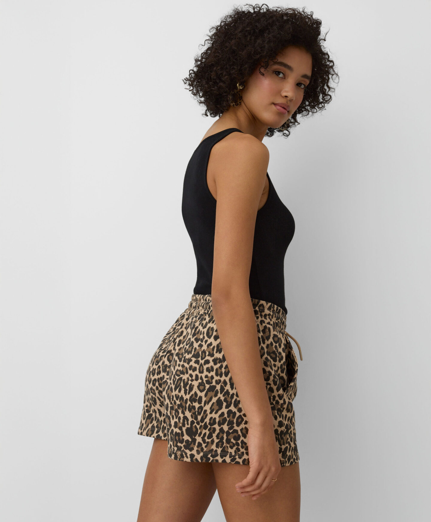 Ovaj šorts za žene sa leopard printom i džepovima savršen je za ljubiteljke animal printa. Lagan je i prijatan na dodir. Odlično se kombinuje sa jednobojnim topovima, od majica na bretele do elegantnijih košulja. Elastični pojas obezbeđuje udobnost.