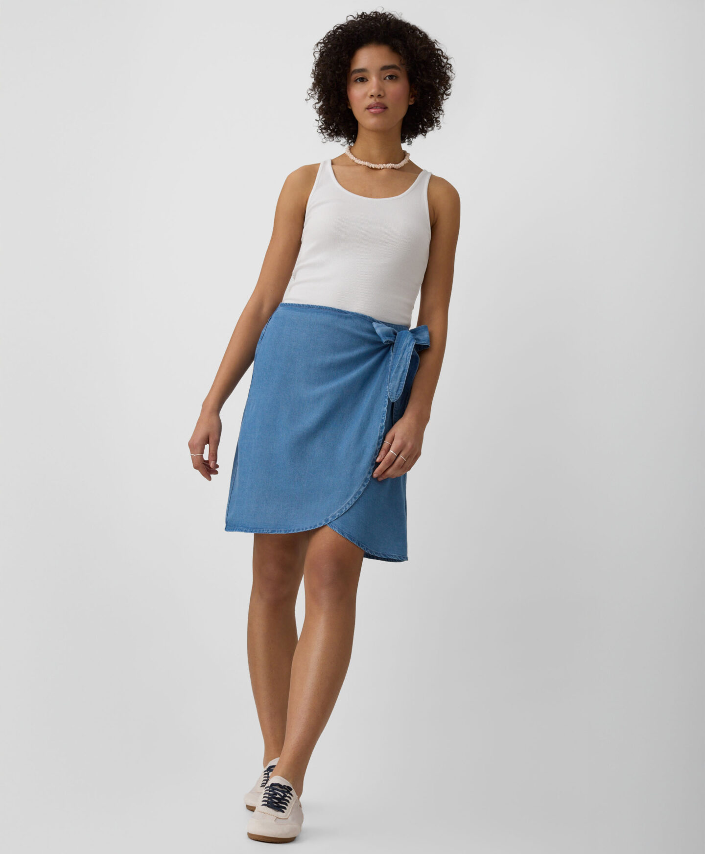 Ova suknja za žene od 100% liocela sa vezivanjem kombinuje eleganciju suknje i praktičnost šortsa. Materijal je izdržljiv i otporan na gužvanje, a ujedno prijatan za kožu i prozračan. Ovaj model je savršen za tople dane, pružajući slobodu pokreta i udobnost.