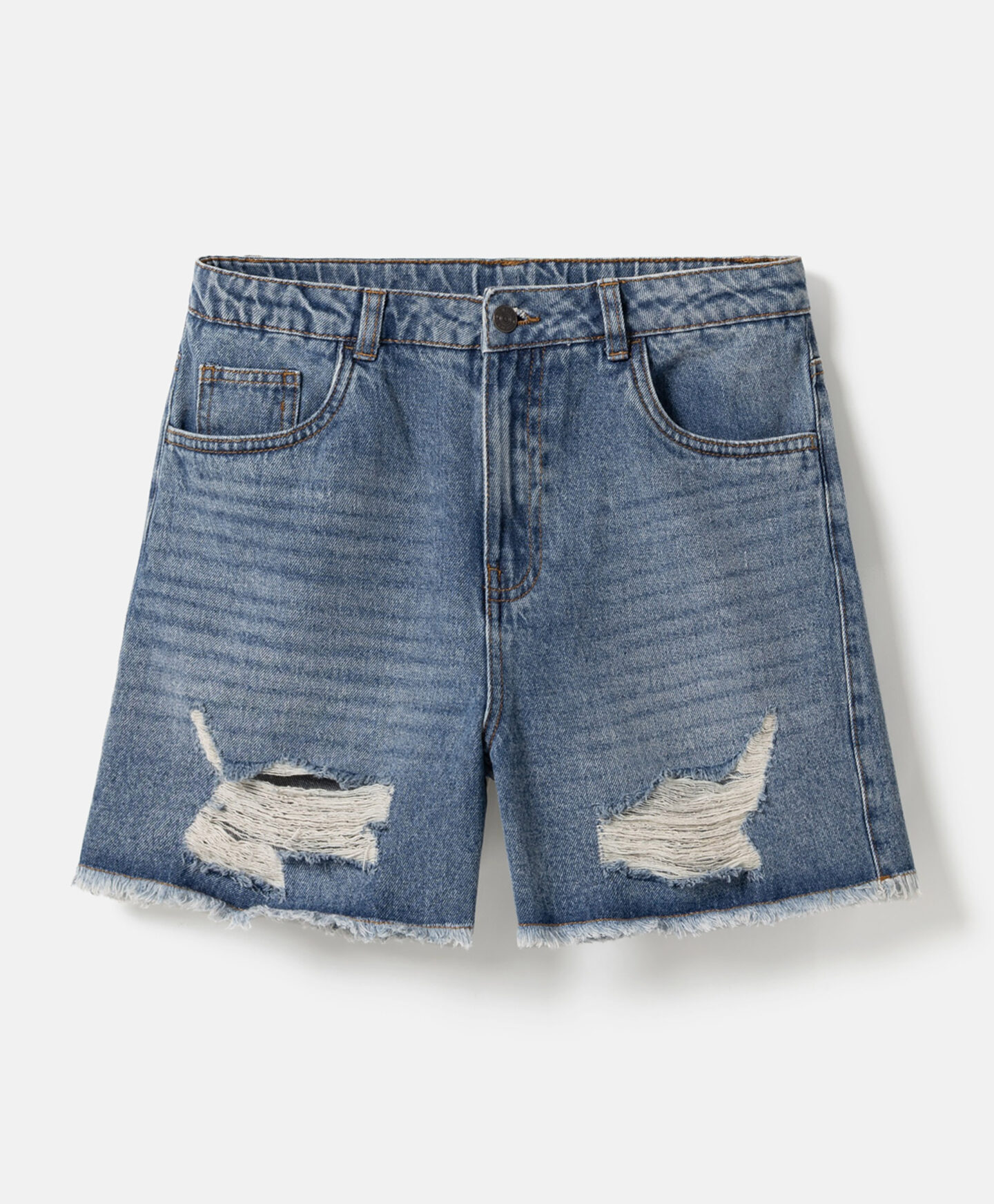 Ovaj teksas šorts za devojčice od 100% pamuka savršen je izbor za male ljubiteljke mode koje žele udobnost. Teksas je mekan i omogućava koži da diše čak i tokom toplih dana. Kroj je osmišljen tako da pruža potpunu slobodu pokreta. Izdržljiva završna obrada osigurava da pocepani detalji zadrže oblik i ne blede nakon pranja.