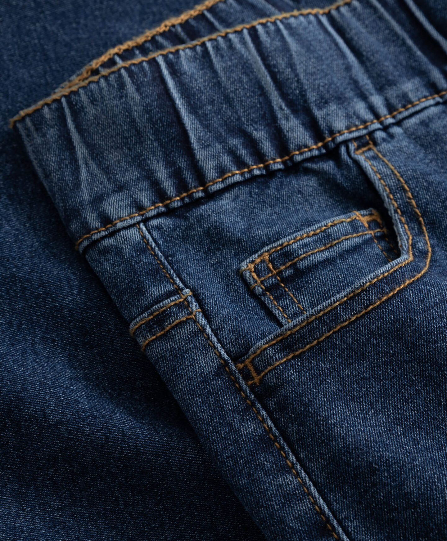 Ovaj teksas šorts za muškarce savršen je izbor za muškarce koji vole denim, ali žele udobnost trenerke. Zahvaljujući elastičnom pojasu sa učkurom, savršeno se prilagođava telu. Tamna boja ne samo da izgleda moderno, već je i veoma praktična. Lako se kombinuje uz sve – od bele majice do košulje sa printom.