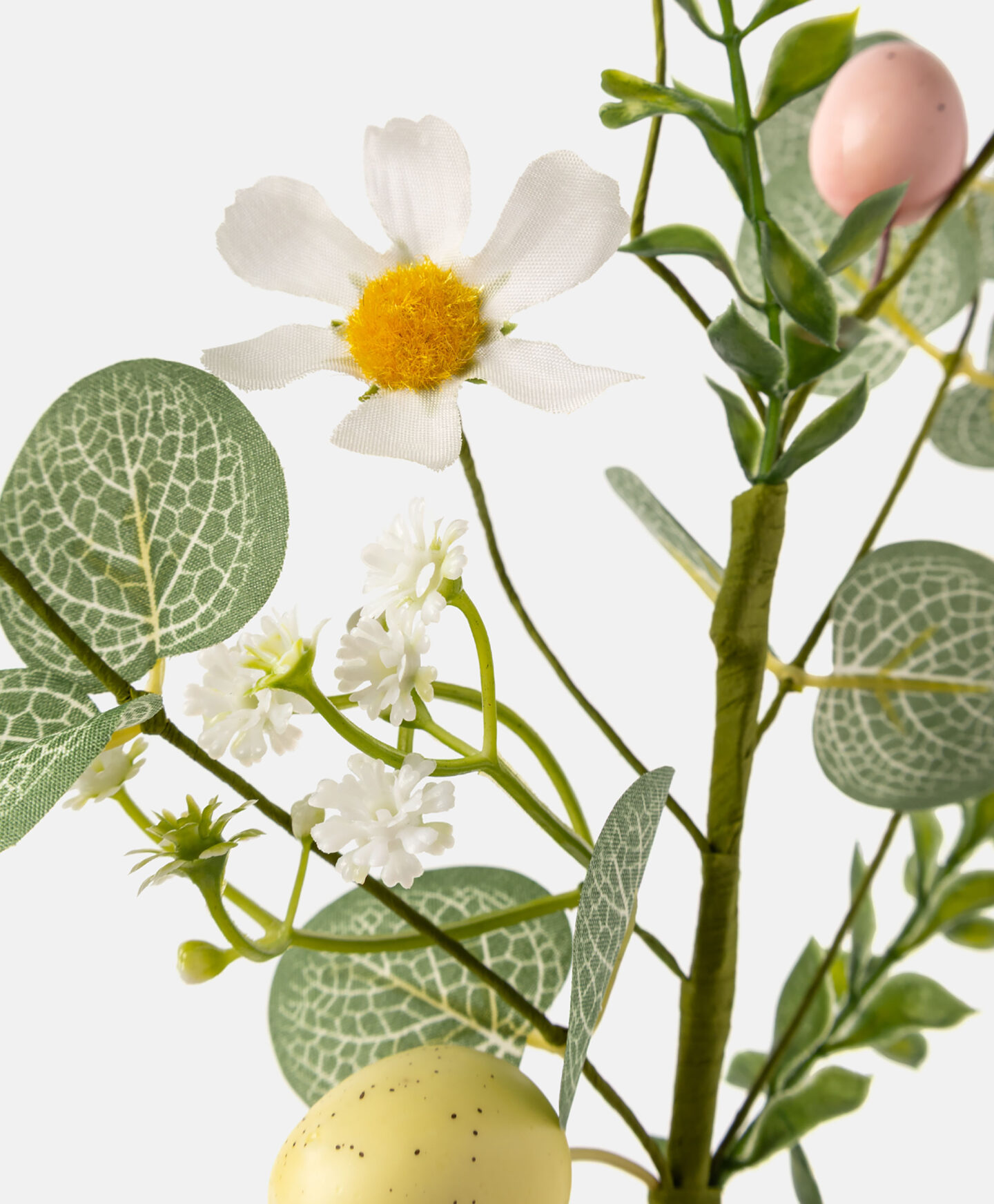 Ukrasna grana sa šarenim uskršnjim jajima i cvećem savršeno je rešenje za sve koji traže već spremnu, upečatljivu dekoraciju. Možete je iskoristiti za kreiranje većeg aranžmana ili je postaviti u saksiju kako biste svojim sobnim biljkama dodali uskršnju notu. Odlično izgleda i kao deo buketa ili samostalno izložena u vazi. Uneće proleće u vašu dnevnu sobu!