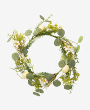 Uskršnji venac sa belim cvećem savršen je kao dekoracija za vrata, lep dodatak dnevnoj sobi ili kancelariji, ali i kao ukras za uskršnje proslave i okupljanja. Možete ga iskoristiti i za kreiranje prolećnog aranžmana sa mirisnim svećama i dizajnerskom vazom. U ponudi je više različitih dezena.