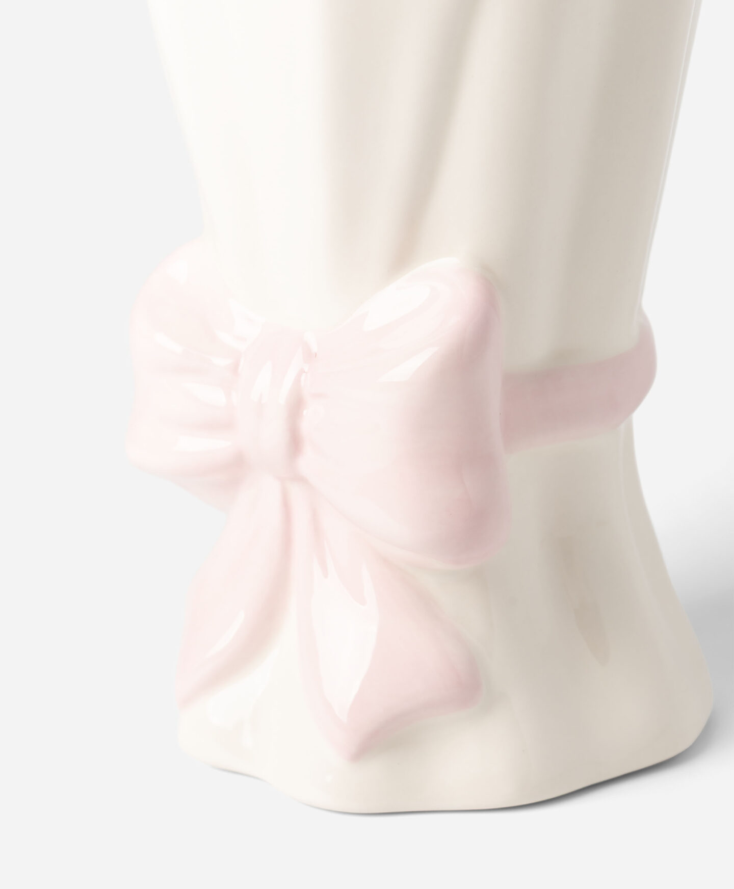 Keramička vaza sa mašnom savršeno upotpunjuje dekor svakog enterijera. Napravljena 100% od dolomita, impresionira izdržljivošću i elegancijom. Dekorativni detalj u obliku mašne daje joj suptilan šarm i čini je pogodnom kako za klasične, tako i za moderne aranžmane. Idealna je za izlaganje svežeg cveća, sušenih aranžmana ili kao samostalna dekoracija.