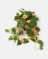 Ova narandžasta veštačka biljka je dizajnerski trik koji će trenutno promeniti izgled svakog prostora. Dugi, viseći izdanci stvaraju trodimenzionalnu dekoraciju koja ispunjava prazan prostor na policama, ormarićima ili u visećim saksijama. Zahvaljujući savremenim materijalima, listovi imaju prirodnu strukturu i izgledaju kao pravi. Savršeno se uklapa u glamurozne, boho i minimalističke, svetle enterijere.