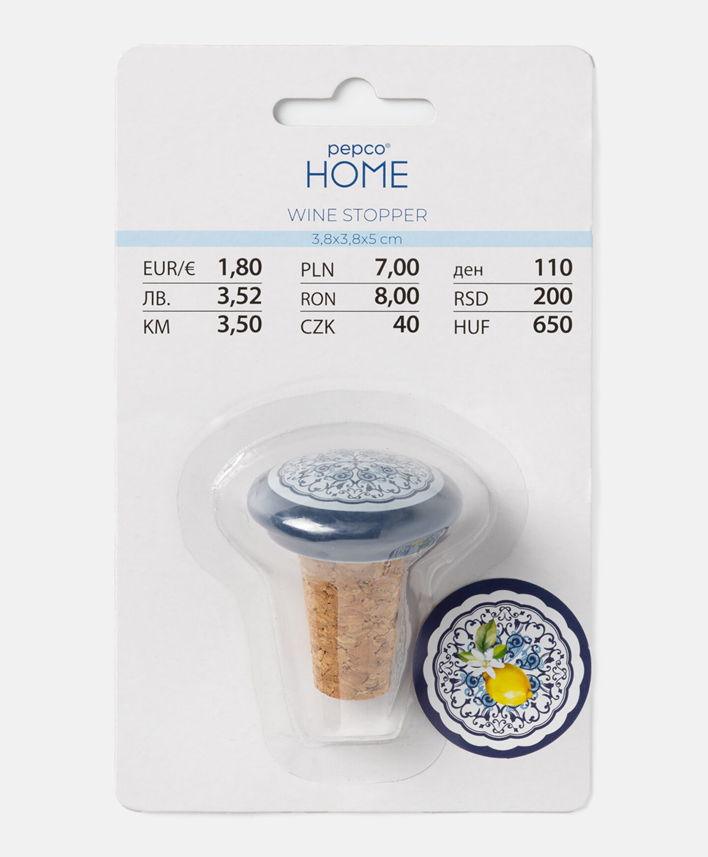 Čep za flašu sa dekorativnim dezenom praktičan je dodatak svakoj kuhinji. Omogućava čvrsto zatvaranje flaša čiji sadržaj nećete odmah potrošiti. Kombinacija prirodne plute i izdržljive stoneware keramike čini čep dugotrajnim, lakim za održavanje i pouzdanim u zaštiti sadržaja od prosipanja, gubitka ukusa i oksidacije.