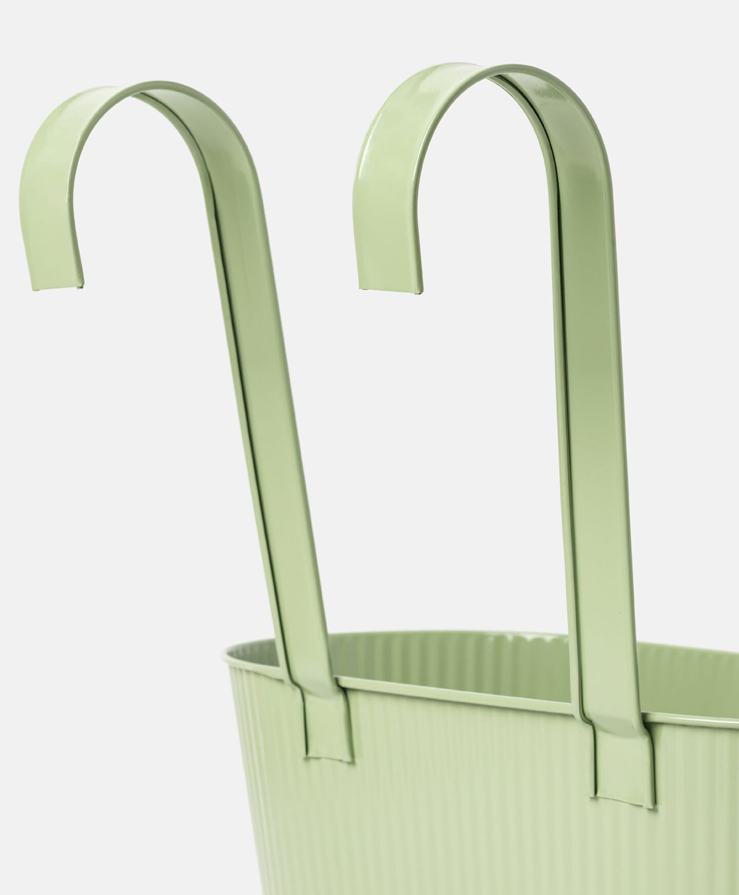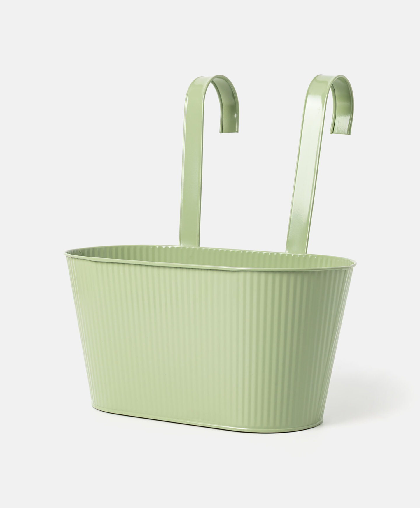 Izdužena zelena viseća ukrasna saksija sa rebrastim zidovima privlači pažnju svojim prolećnim dizajnom. Praktične kuke za kačenje omogućavaju postavljanje na ogradu balkona ili drvenu zidnu površinu, čime se maksimalno iskorišćava prostor. U ponudi je dostupno više dezena.