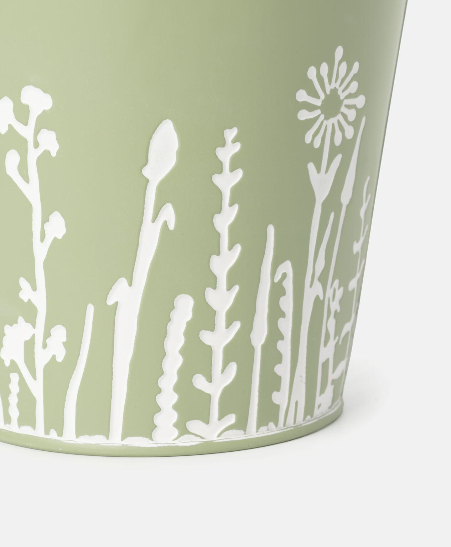 Zelena metalna saksija sa dezenom je lagana, izdržljiva i otporna na vremenske uslove. Prolećni motiv koji krasi njene stranice uneće dašak svežine na vašu terasu ili balkon. Odlična je za sadnju manjih biljaka, povrća ili cveća. Saksija se lako čisti i održava, dovoljno je prebrisati je vlažnom krpom kako bi zadržala sjaj i lep izgled. U ponudi je dostupno više dezena.