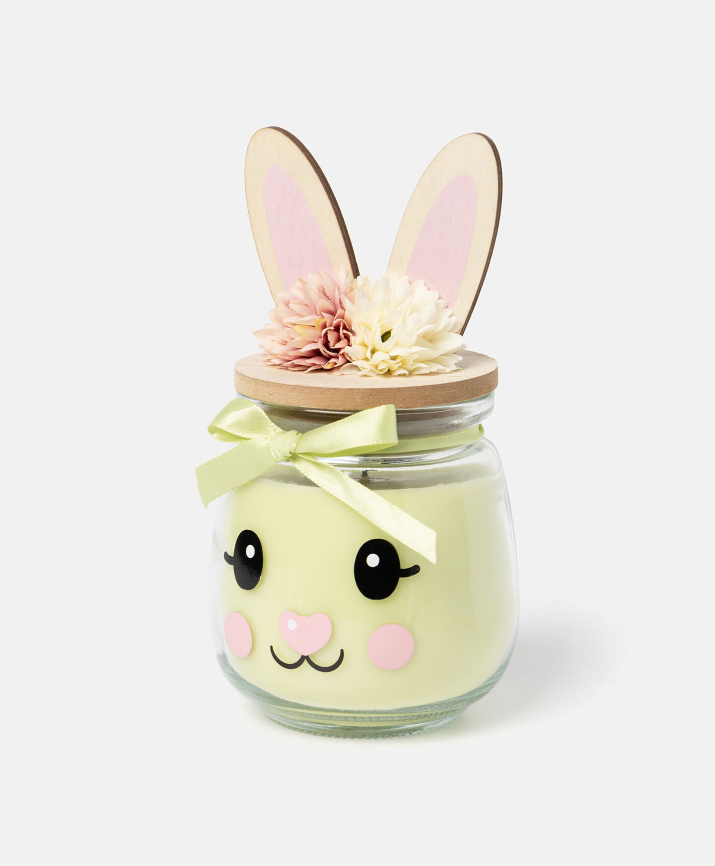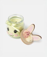 Zelena mirisna sveća u staklenoj čaši ima dekorativni poklopac sa 3D ušima. Dizajn inspirisan zečevima daje joj poseban šarm koji će se sigurno dopasti najmlađim članovima porodice. Ima dugo vreme gorenja i prijatan miris. Dostupna je u tri dezena.