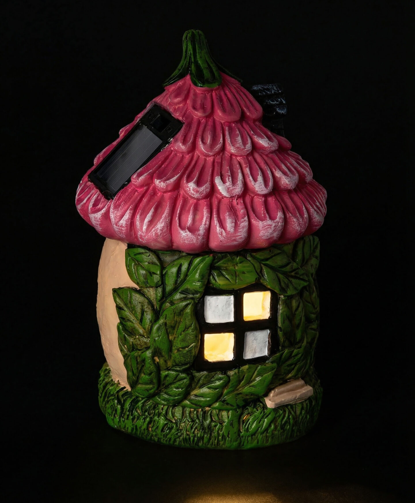 Zelena solarna lampa u obliku kuće je šarmantna dekoracija koja pomaže u stvaranju magične atmosfere na vašoj terasi ili balkonu svake večeri. Pokreće se solarnom energijom, zahvaljujući ugrađenom solarnom panelu, eliminiše potrebu za kablovima ili baterijama, pri čemu štedi električnu energiju. Lampa se automatski uključuje u sumrak i isključuje u zoru, obezbeđujući osvetljenje tokom cele noći bez dodatnih radnji. Izrađena je od izdržljivih materijala otpornih na vremenske uslove.